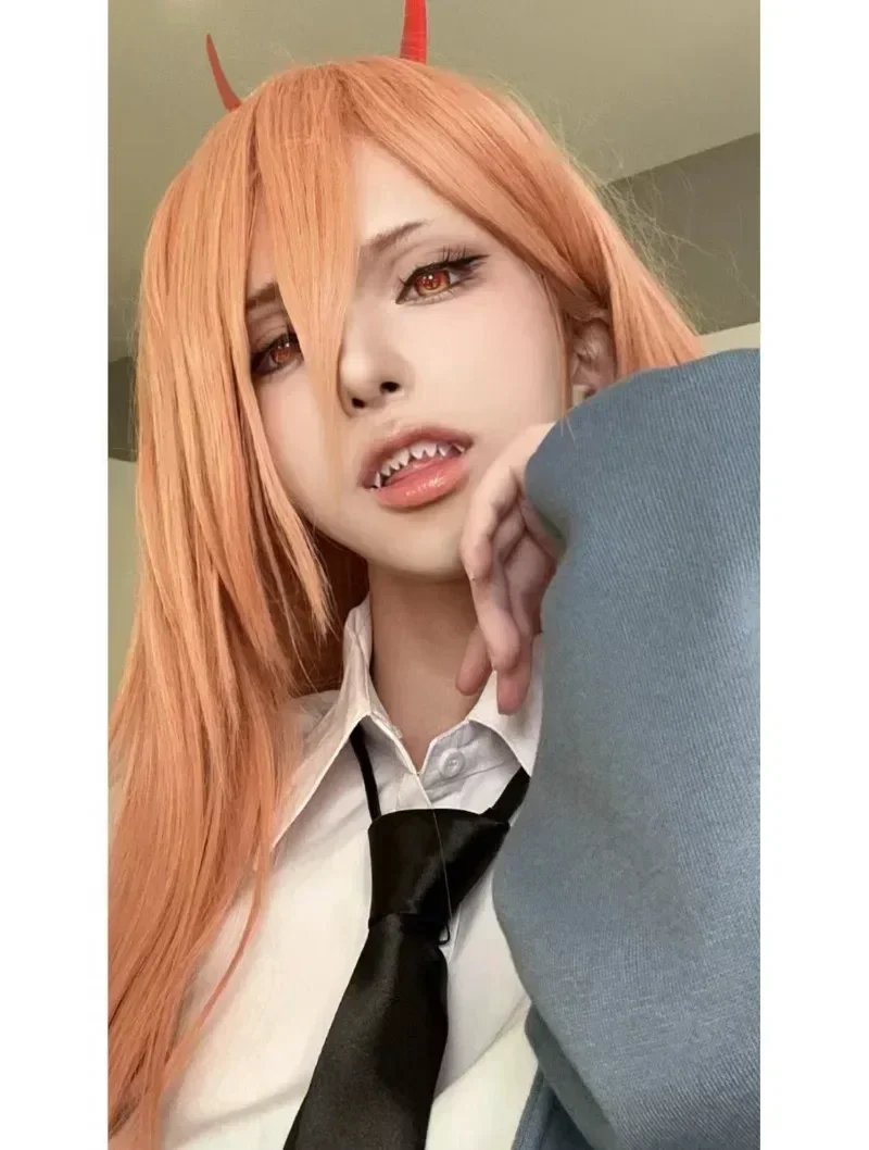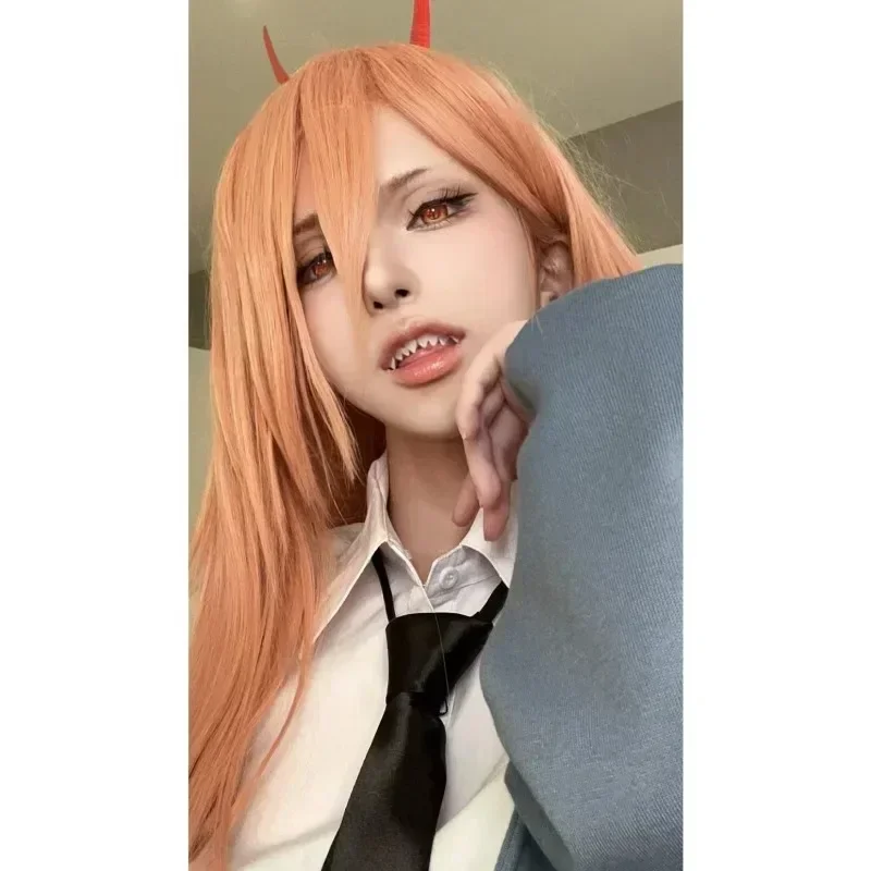 Anime Chainsaw Man Power Cosplay Wigs with WigCap Girls Headwear Halloween Dress Up Party Masquerade Costumes Wigs
