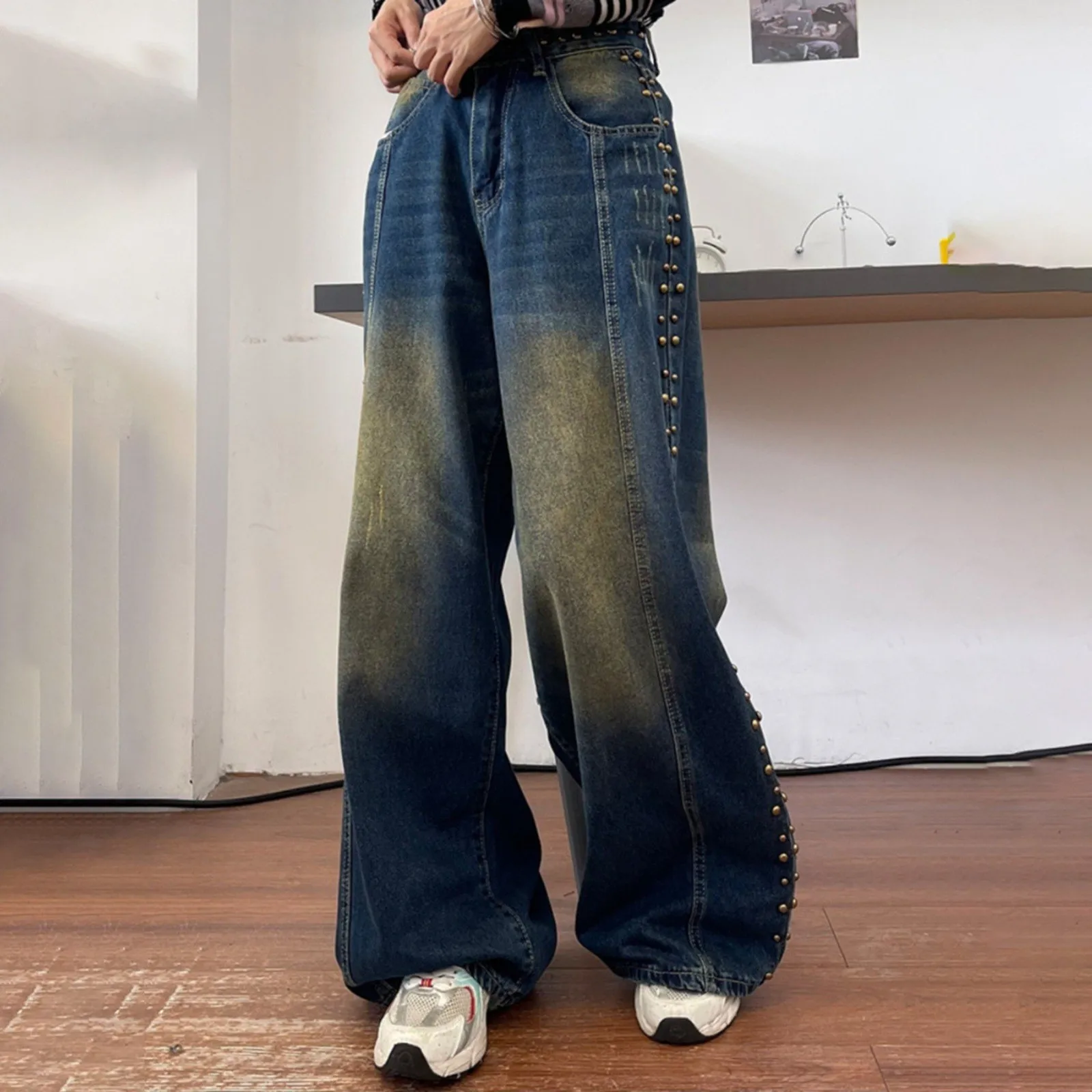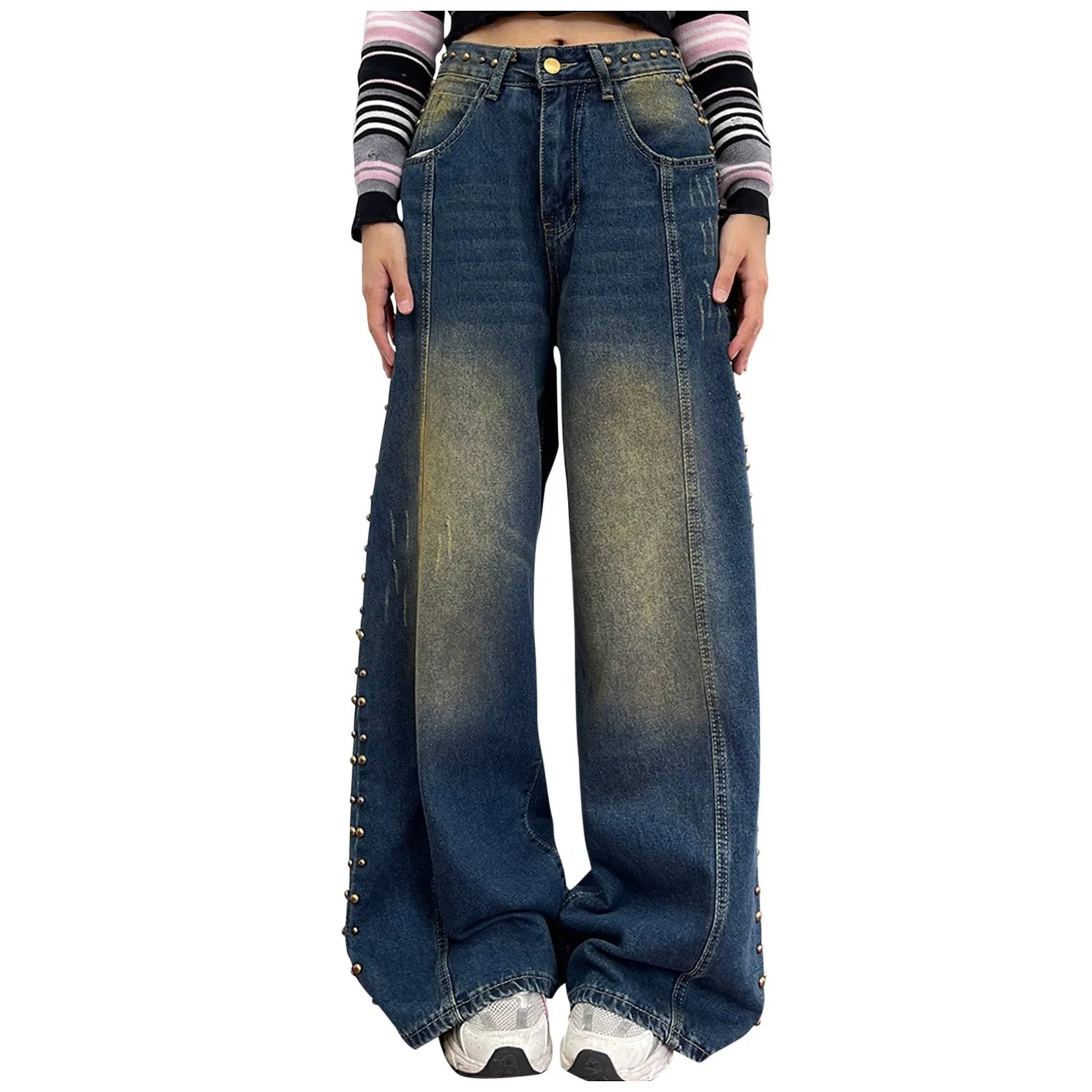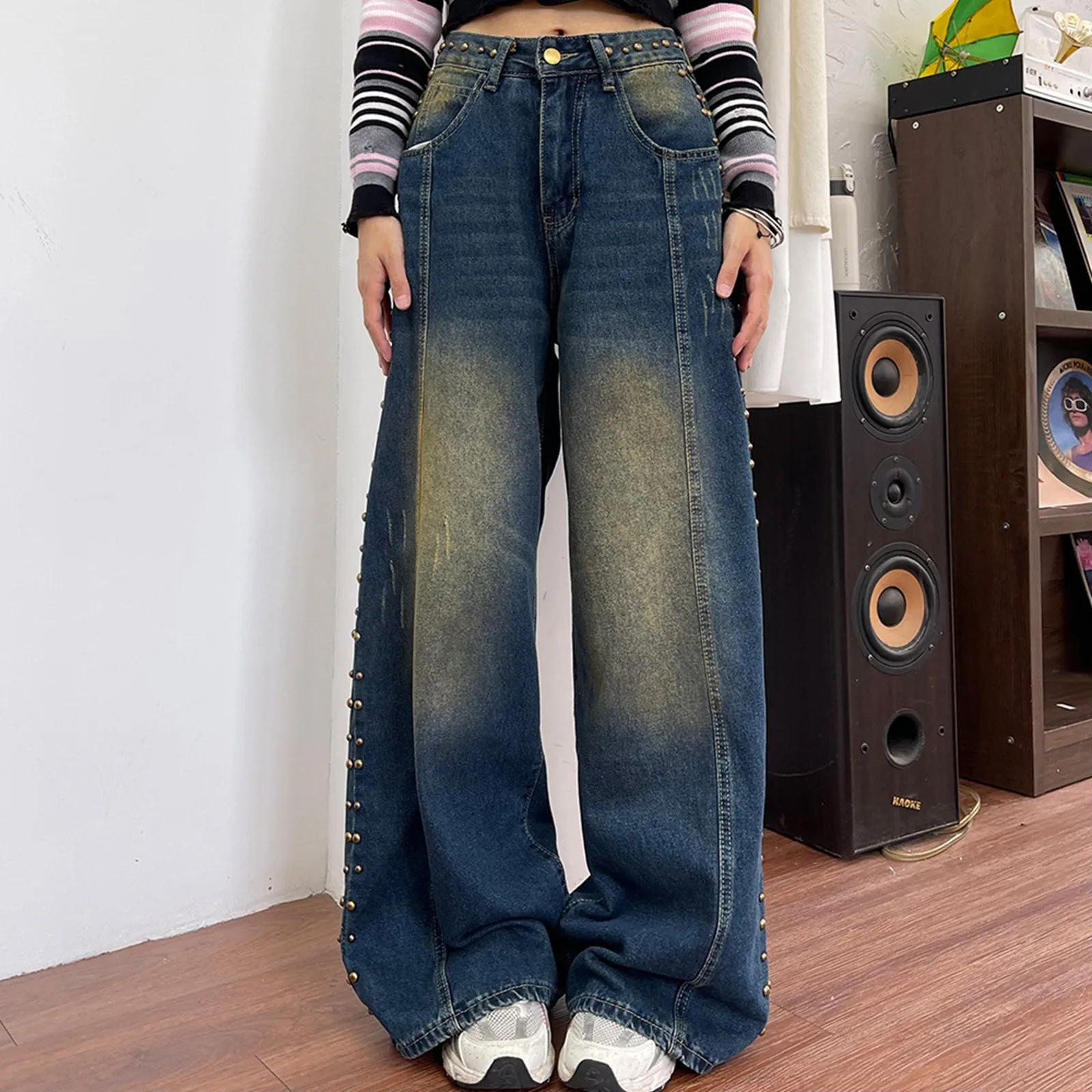 Autumn Women’s Denim Pants Stylish High Waisted Baggy Pants Blue Washed Wide Legs Trousers 2024 New Fashion Simple Casual Jeans