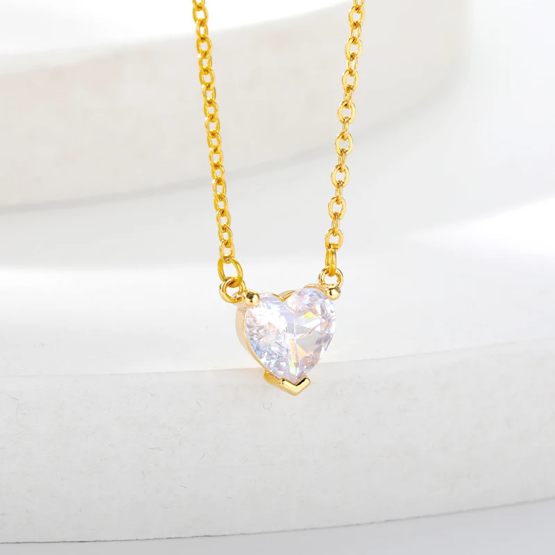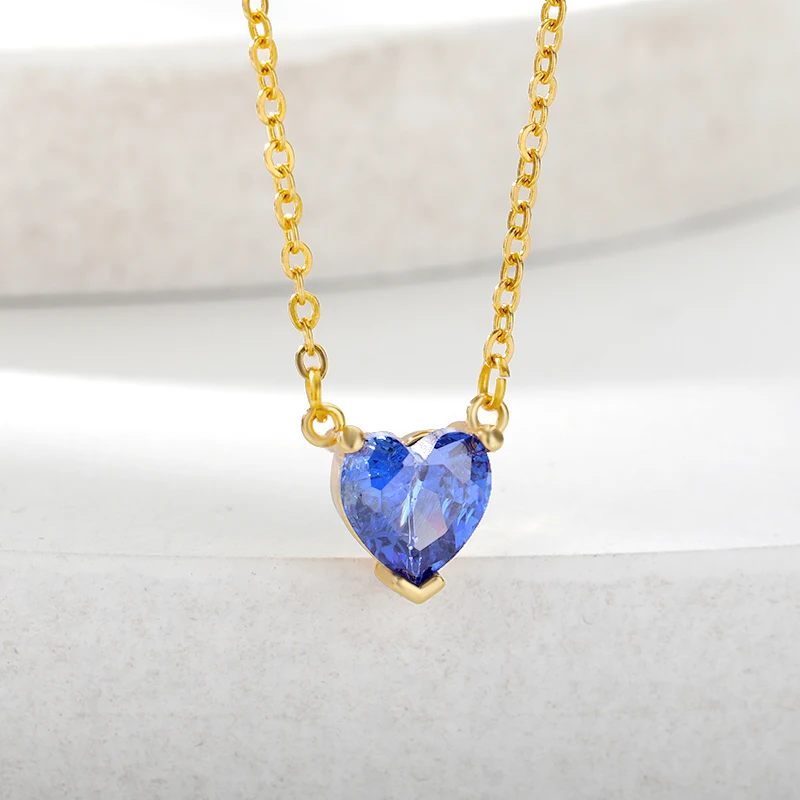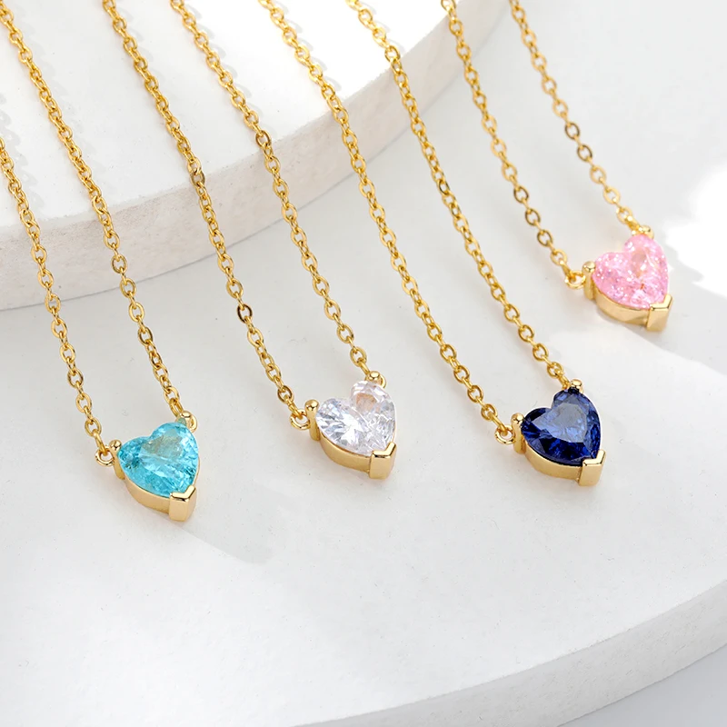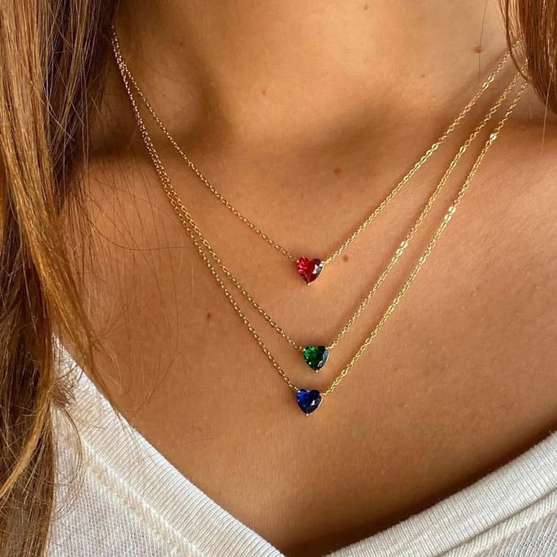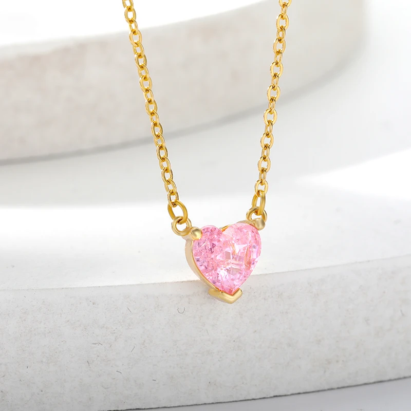 Crystal Heart Necklaces For Women Stainless Steel Boho Zircon Blue Pink Cute Colorful Heart Pendant Neck Jewelry Gifts Whosale