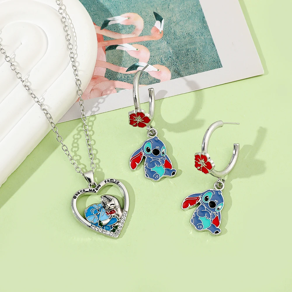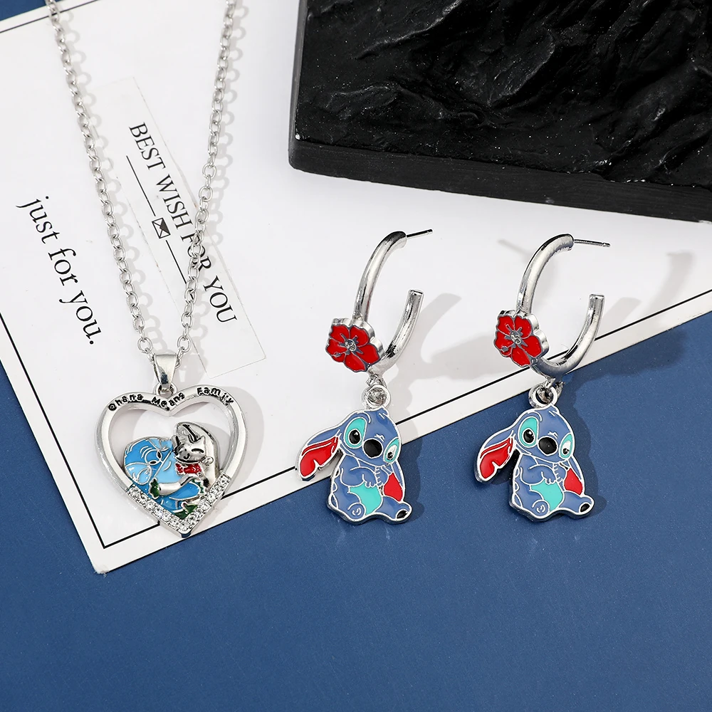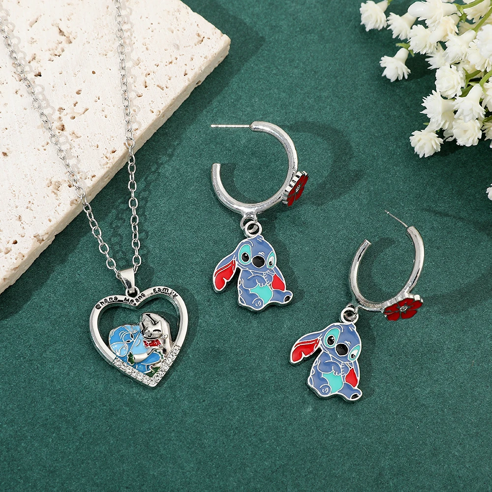 Disney Anime Lilo & Stitch Necklace Eardrop Jewelry Cute Cartoon Figure Stitch Enamel Pendant Jewelry Holiday Gifts for Women