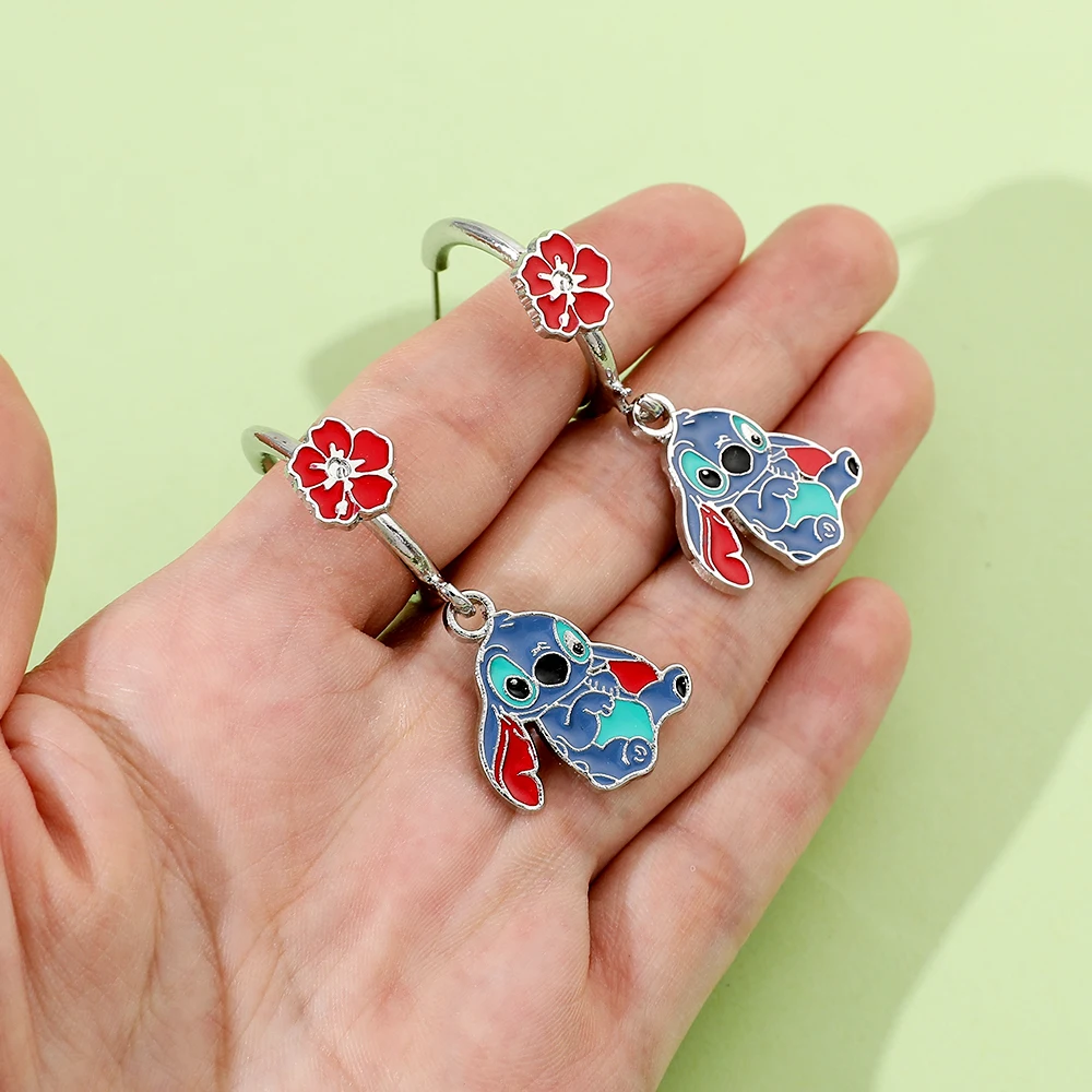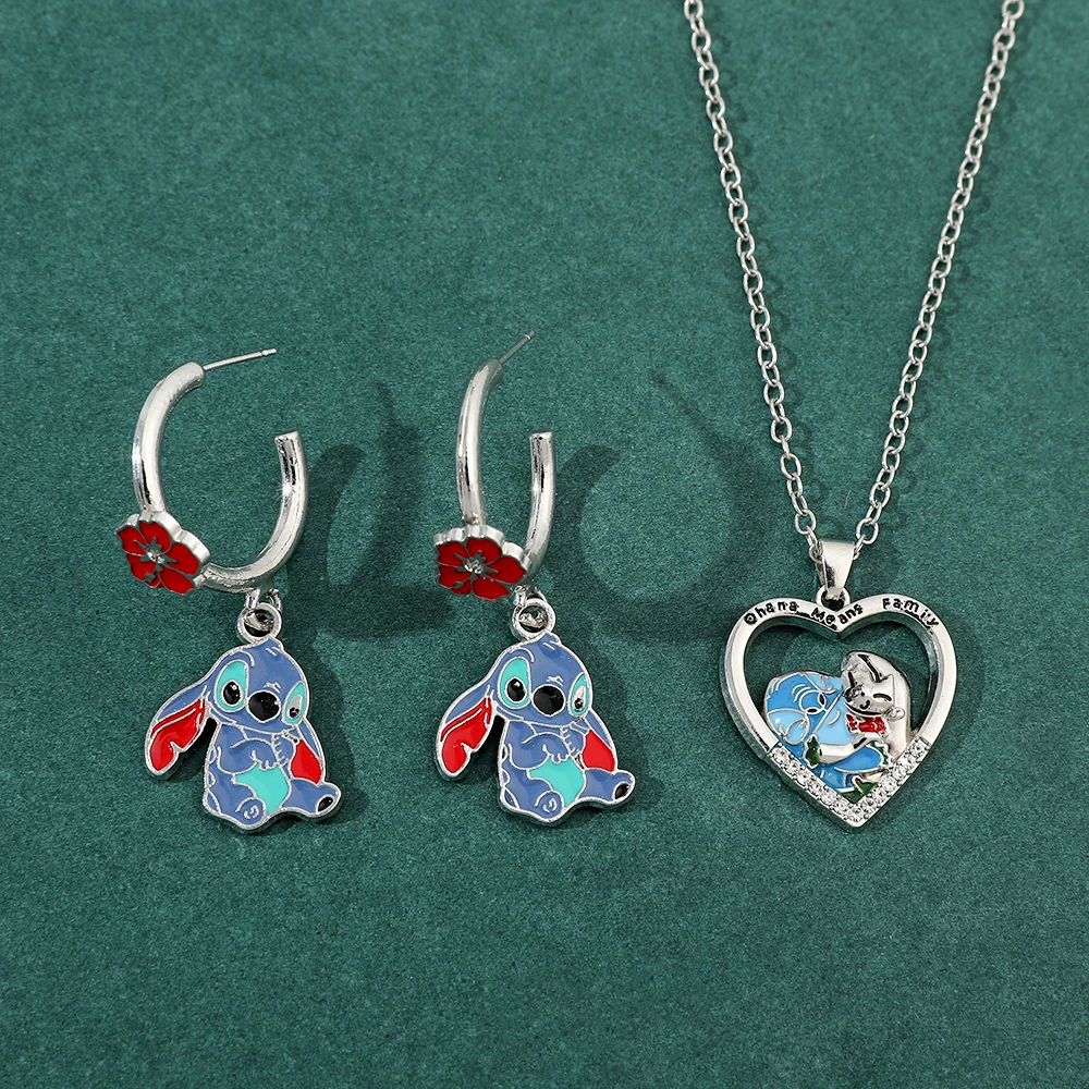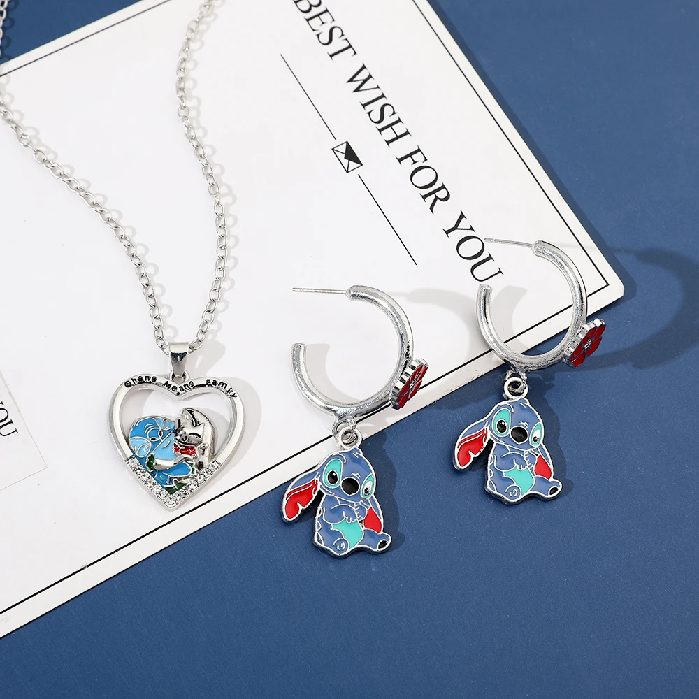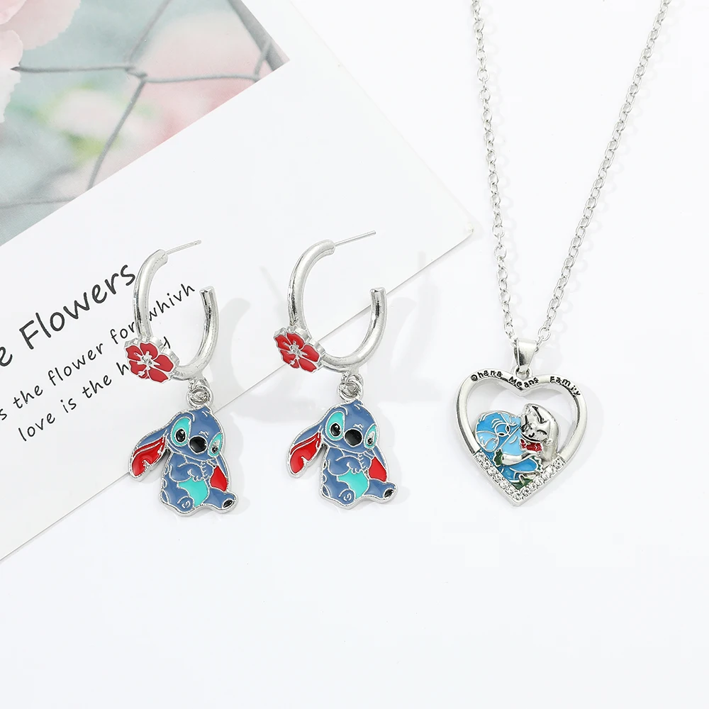 Disney Anime Lilo & Stitch Necklace Eardrop Jewelry Cute Cartoon Figure Stitch Enamel Pendant Jewelry Holiday Gifts for Women