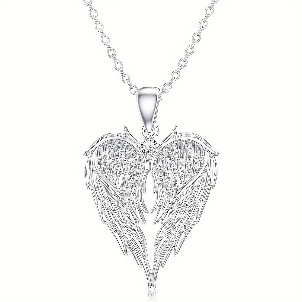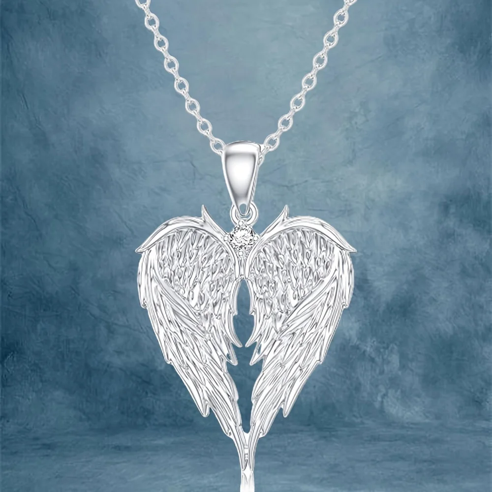 Elegant Angel Wing Heart Shaped Pendant Necklace, Exquisite Fashionable Elegant Versatile Banquet Party Daily Wear Jewelry Gift