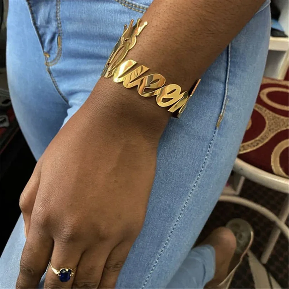 Exaggerated Custom Name Bangle Stainless Steel For Women Personalized Handwriting Name Cuff Bangle Waterproof Punk Jewelry Gift