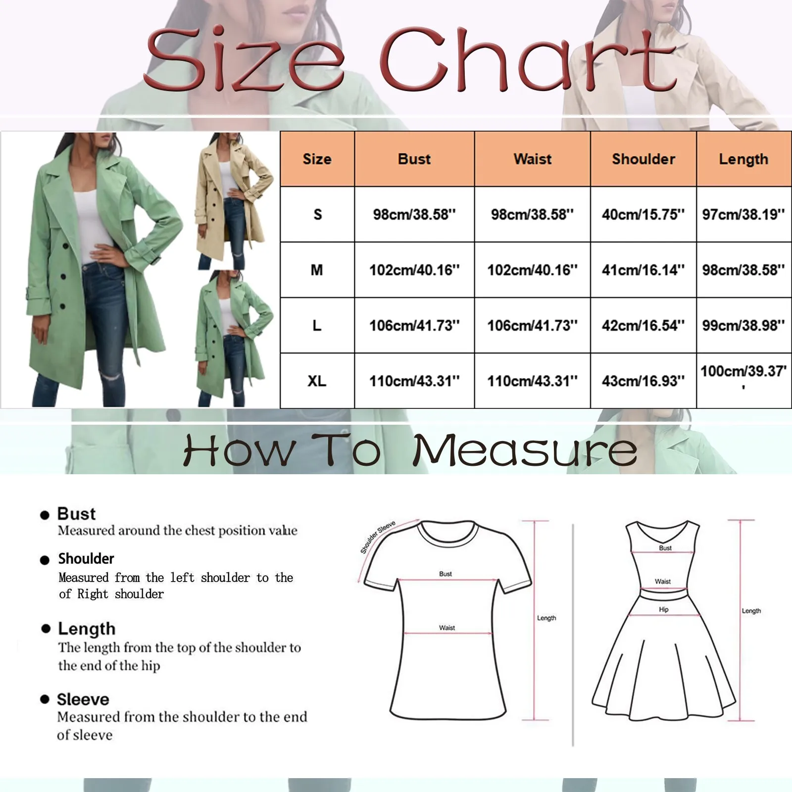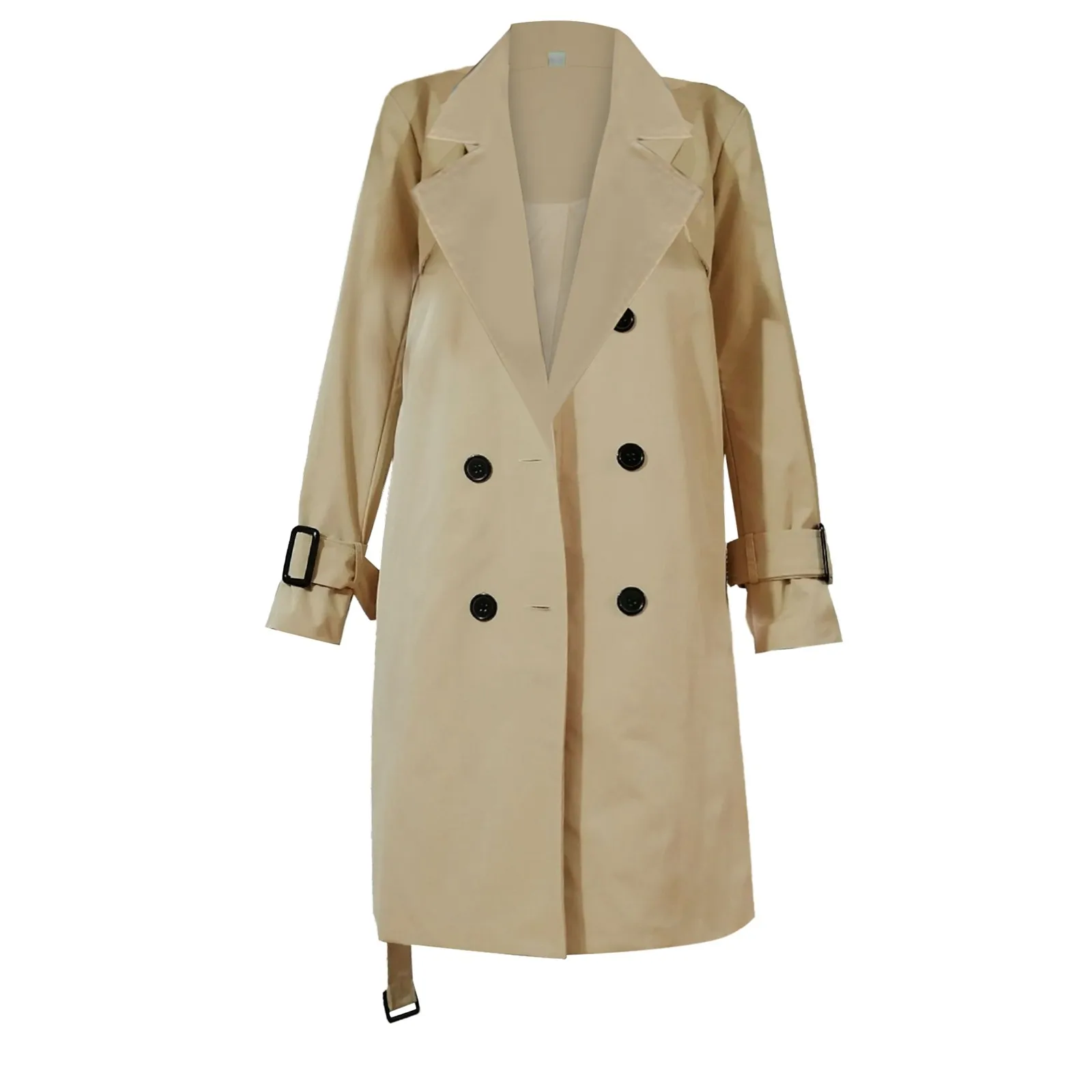 Fashion Women Trench Casual Solid Color Coat Adult Elagant Fashion Long Sleeve Lapel Neck Double Breasted Belted Coat For Female
