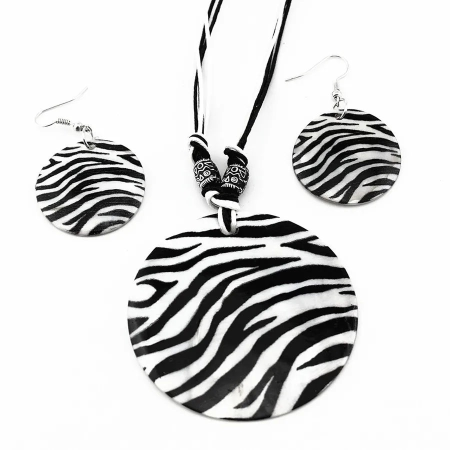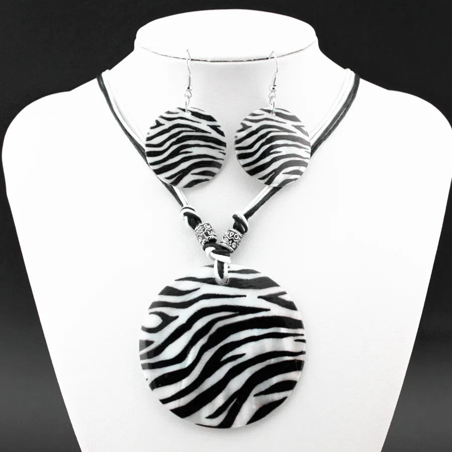 Girl Women’s Zebra pattern Design Necklace Earrings Natural Shell Jewelry Set Butterfly Jewelry for Lady