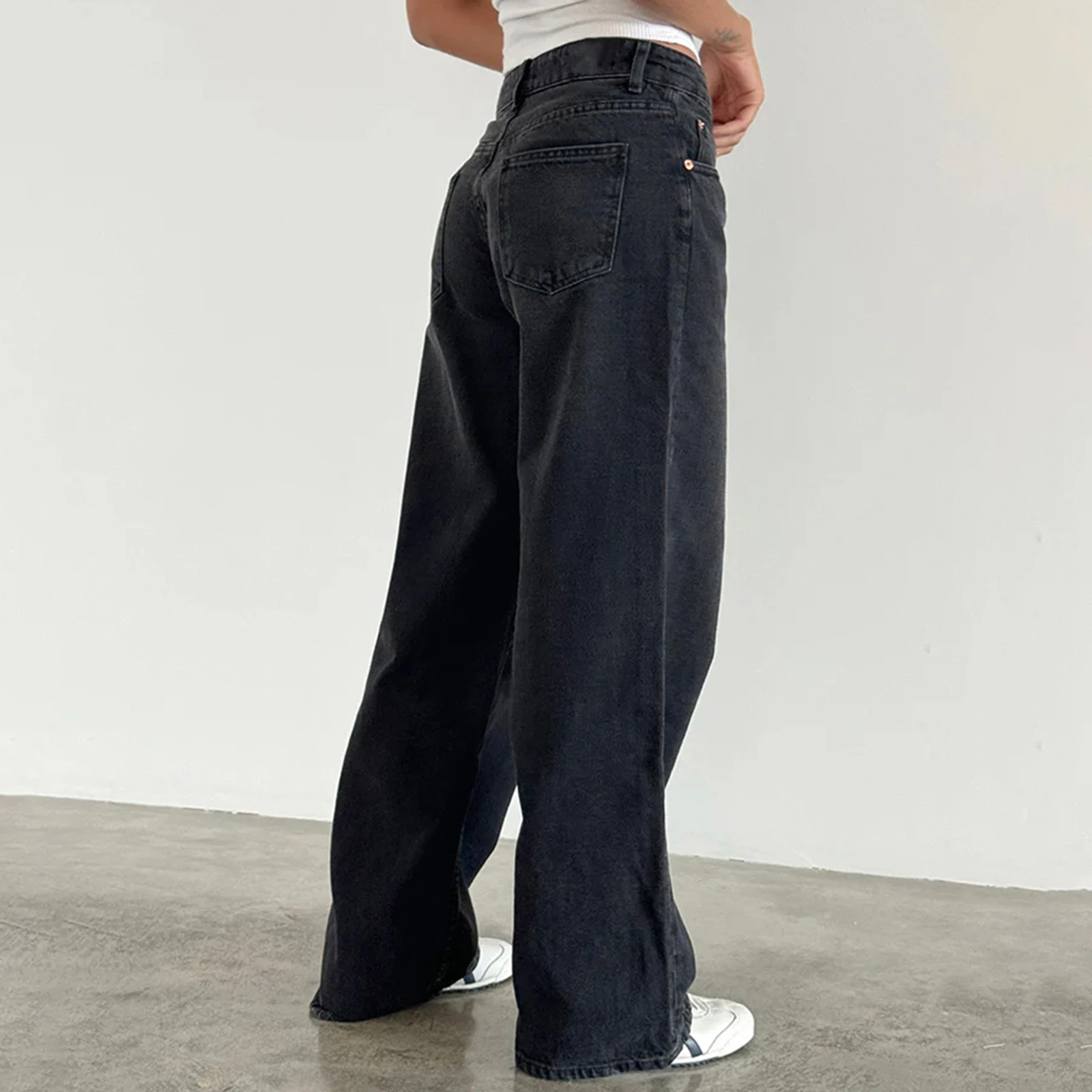 Women's Spring Summer Denim Pants Low Waist Wide Leg Trousers with Pockets