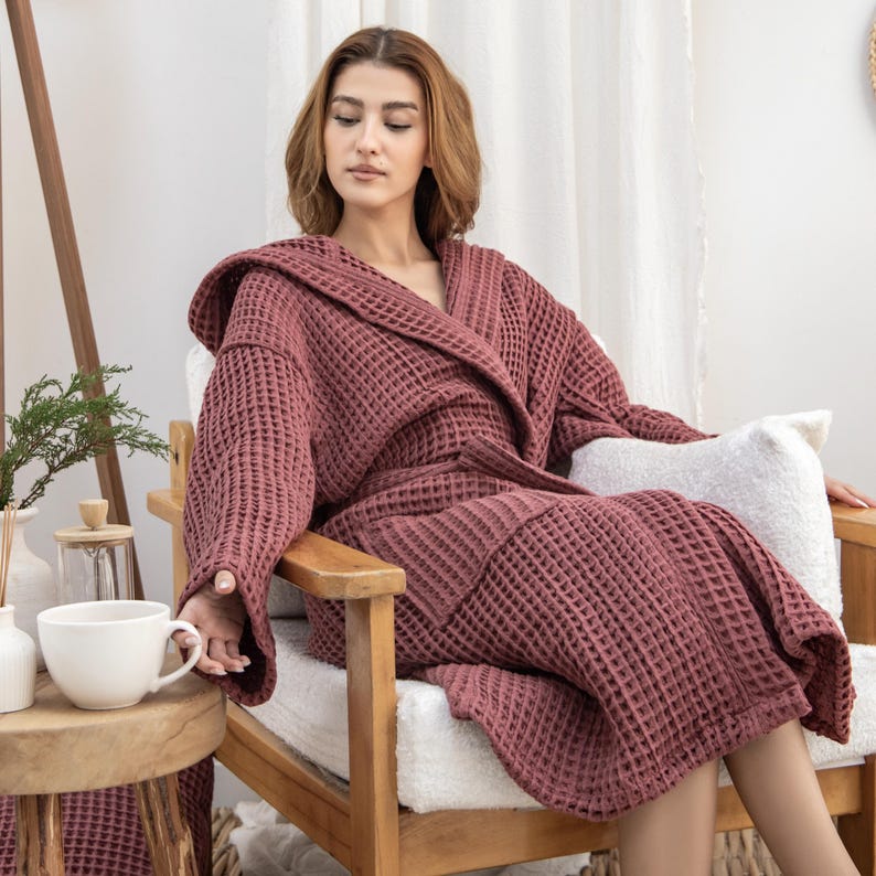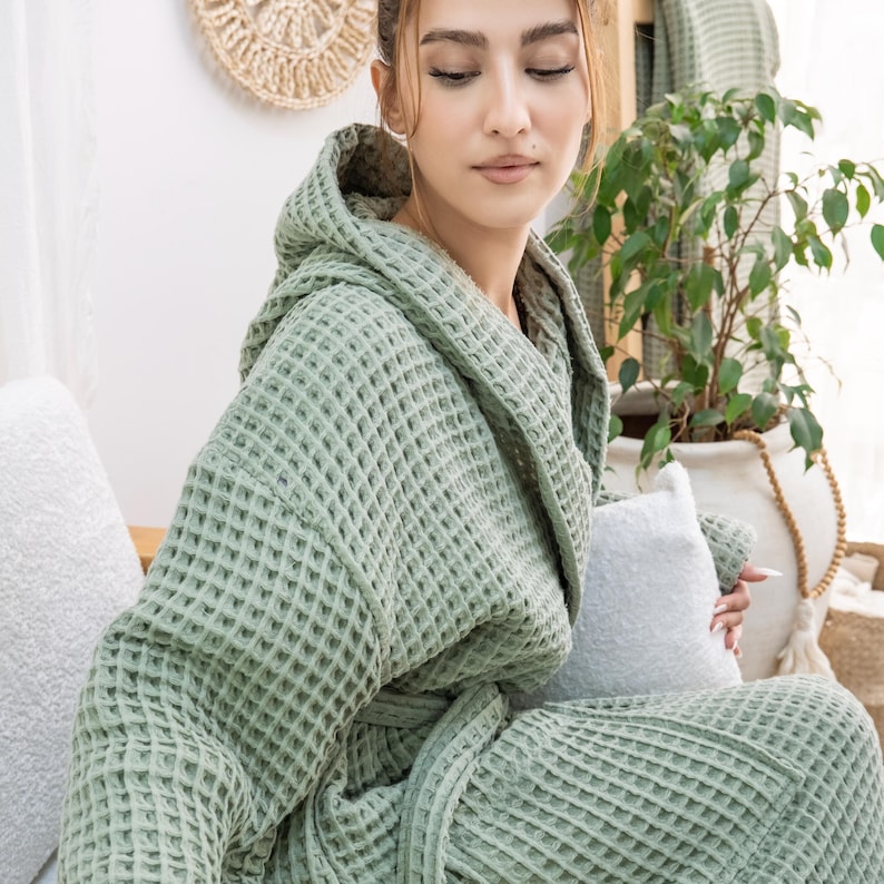 Hoodie Waffle Bathrobe, Cotton Robe, Cozy Organic Robe