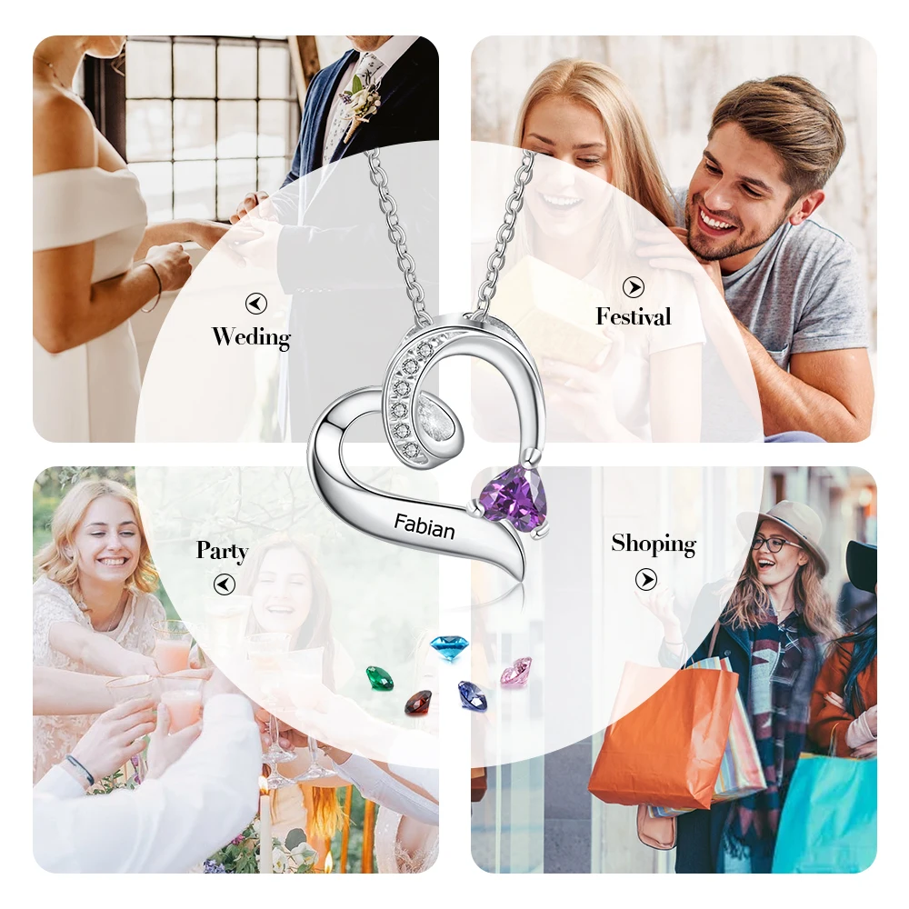 JewelOra 925 Sterling Silver Personalized Mother Necklace with Birthstone Custom Engrave Name Heart Pendants Mother’s Day Gift