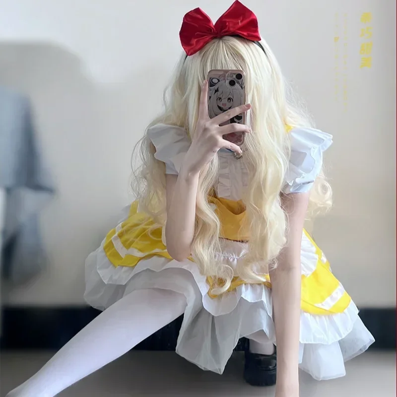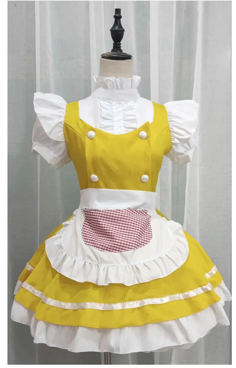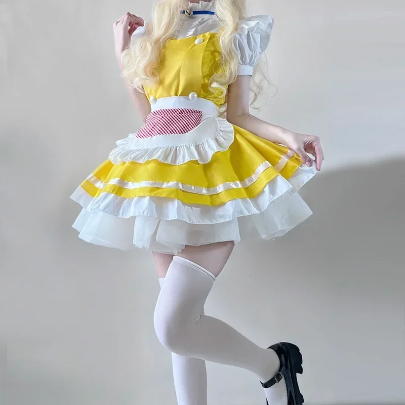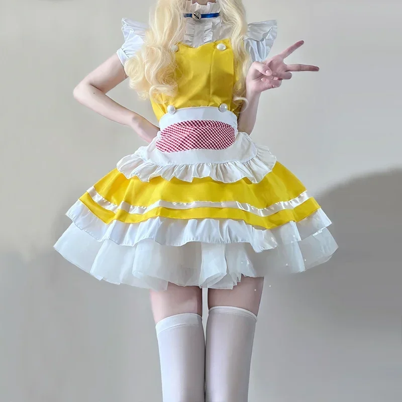 Lolita Yellow Maid Anime Cosplay Costumes Japanese Kawaii Love Live Cosplay Waitress Apron Maids Outfit Halloween Party Dress