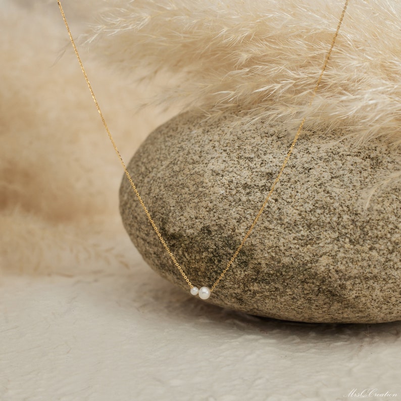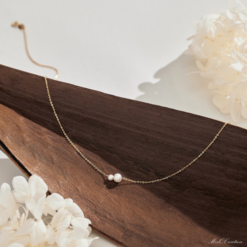 Minimalist Freshwater Pearl Necklace, Sterling Silver 2 Round Pearls Necklace, Bridesmaid Necklace, Daily Pearl Necklace, Bridesmaid Gift, Christmas gift, Christmas jewelry