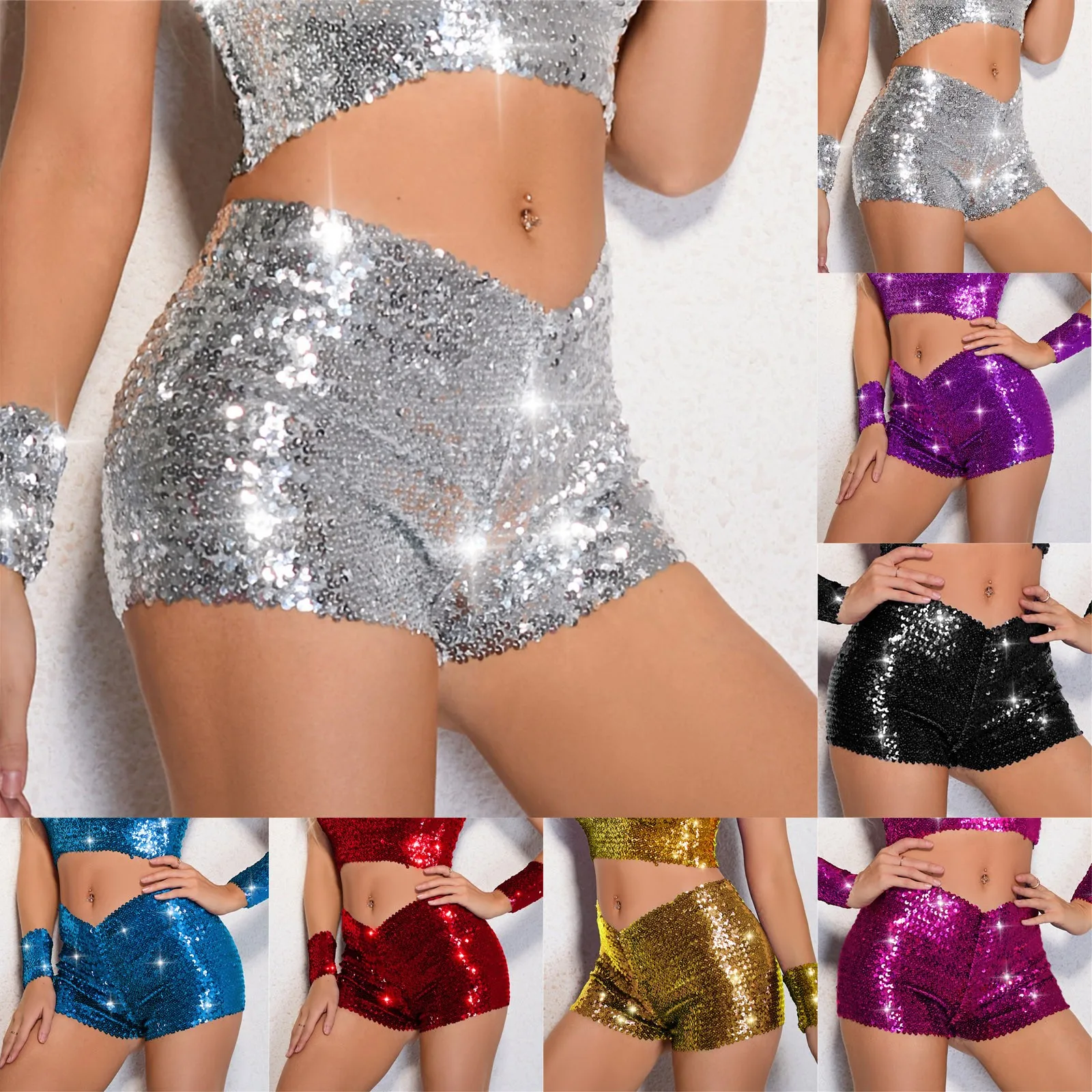 New Sequins Beads Shorts Women DJ Club Performance Dress Shorts Women’s Skinny Solid Carnival Party Shorts Pants Dancewear