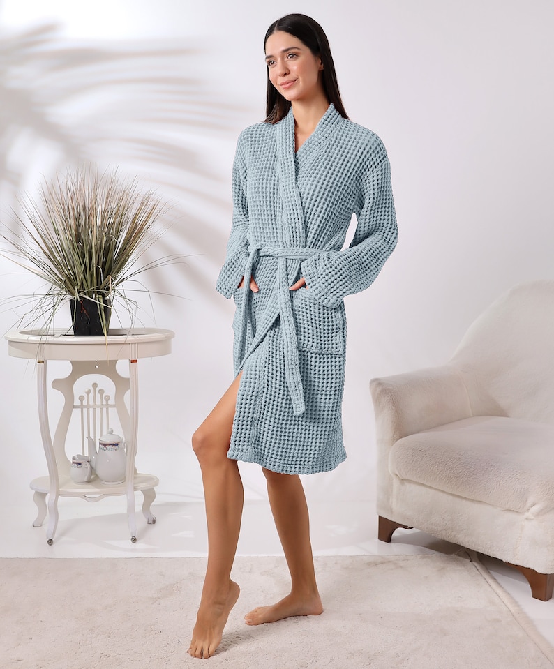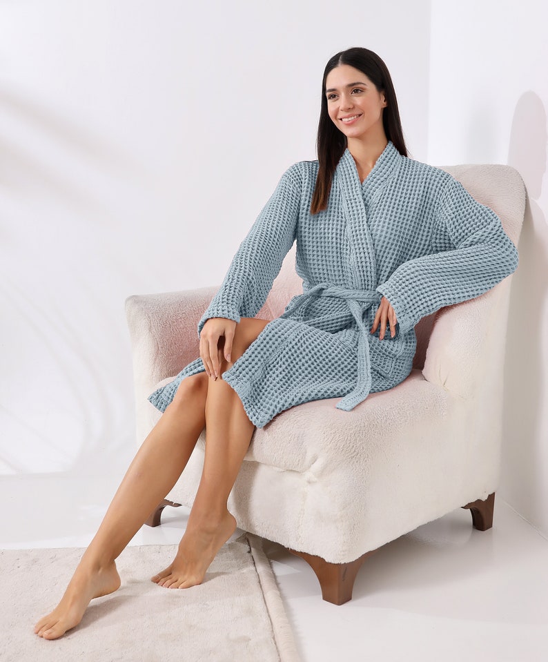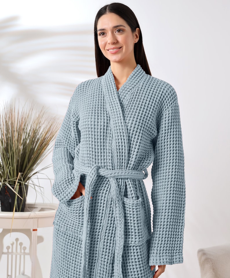 Organic Cotton Unisex Waffle Robe, Pure Cotton Bathrobe, Waffle Robe Bridesmaid, Turkish Handmade Robe