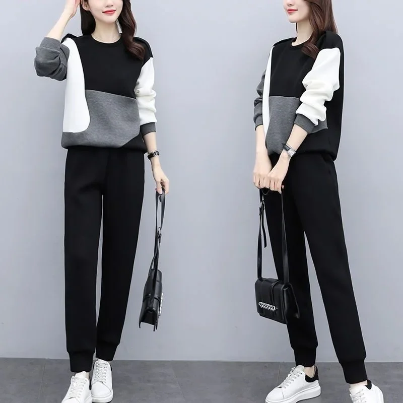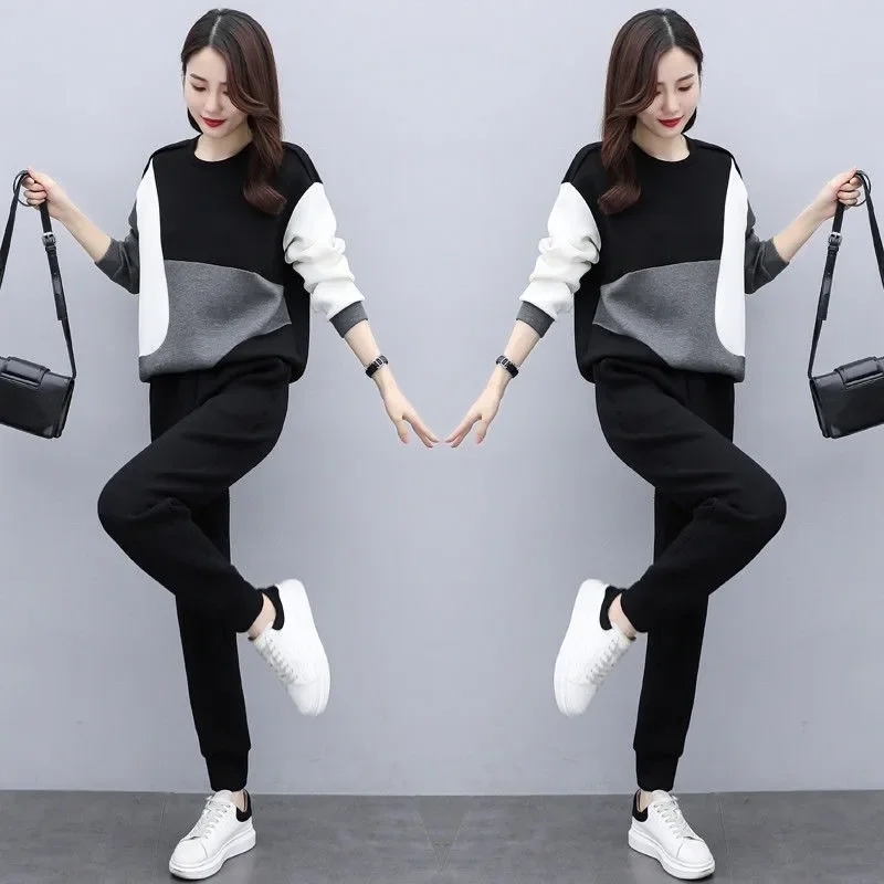 Plus Size Elegant Age-reducing Color Blocking Sweatshirt Jacket 2-piece Set Women’s Casual Sportswear