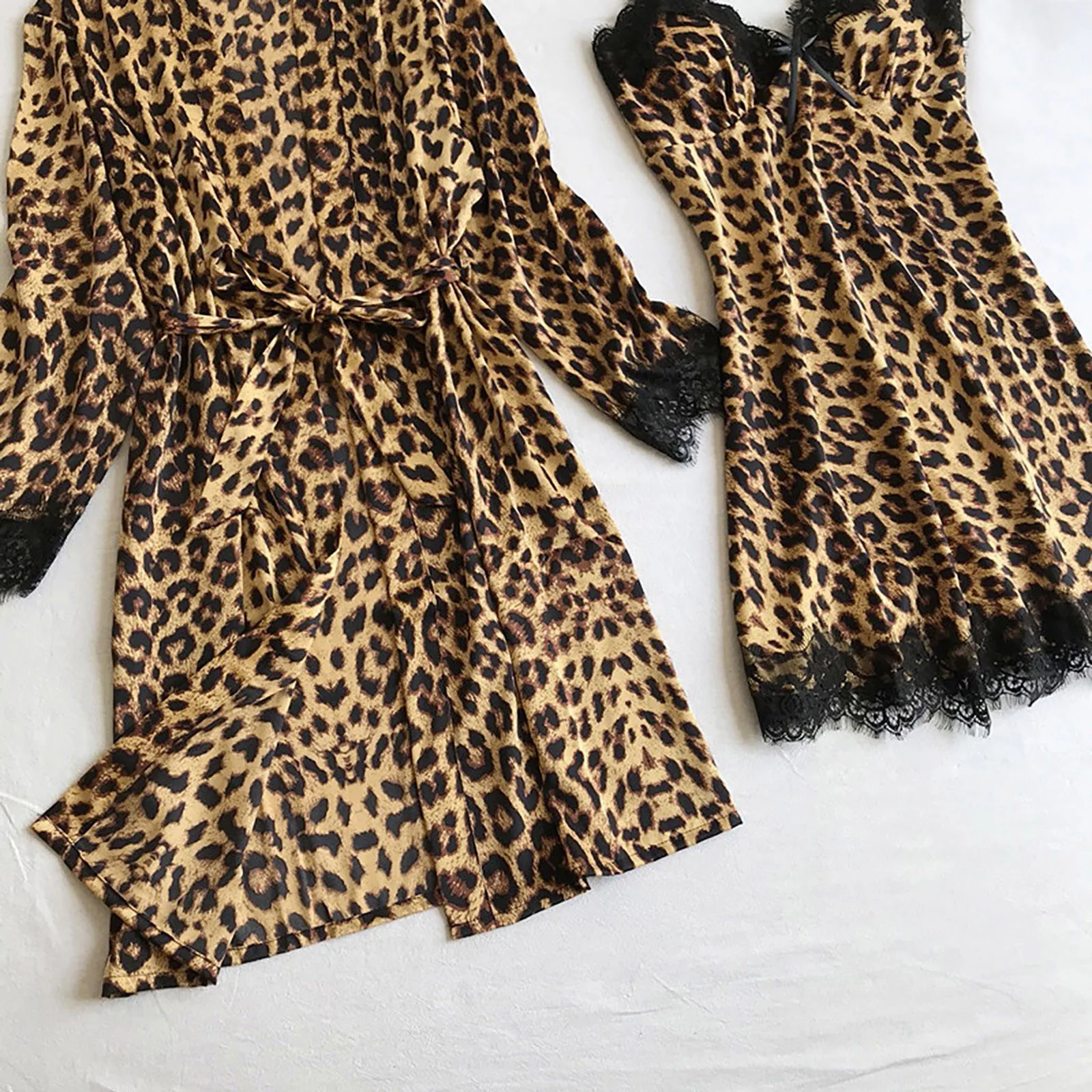 Sexy Leopard Printed Intimates Wireless Rimless Pajamas Lace Night Dress Silk Underwear Sleepwear No Pad Lingerie