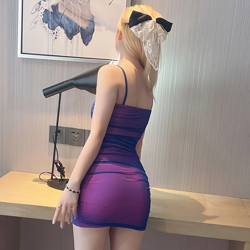 Sexy Women Suspenders Party Dress Lady Outfit Glitter Lace Up Dress Y2K Clubwear Backless Bodycon Mini Dress