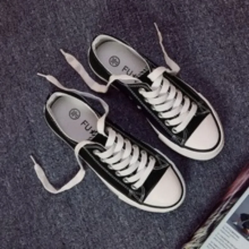 Shoes For Women Low-Top Vulcanized Canvas Platform Sneakers Black Flats Tennis Female Classic Student Small Couples Skateboard