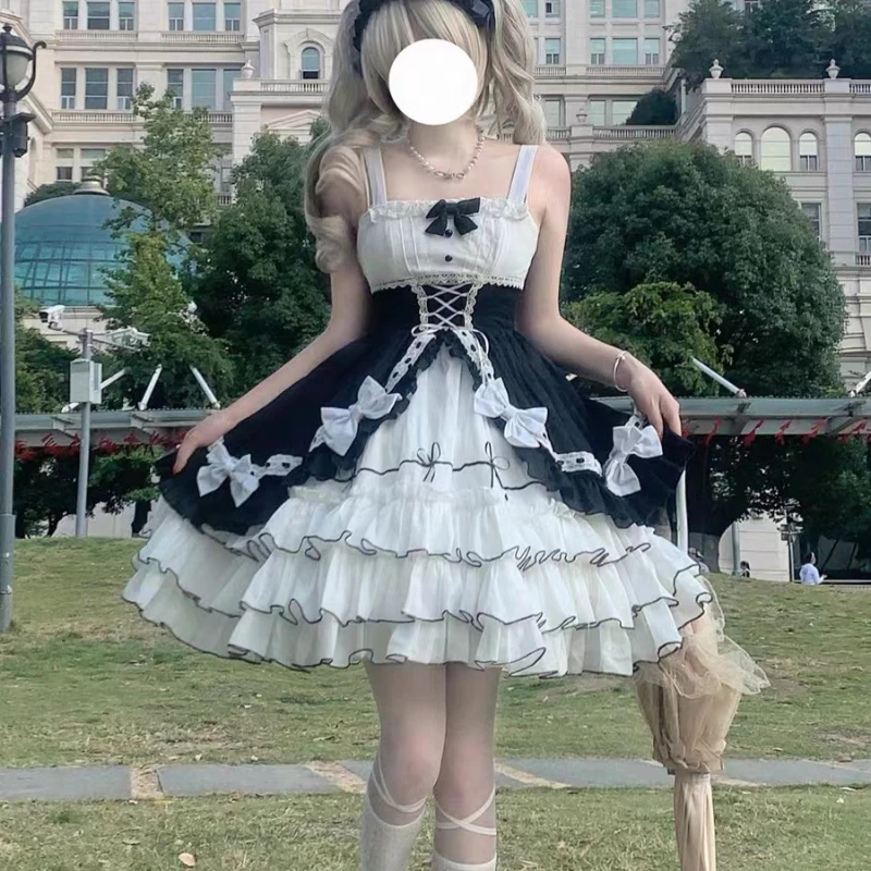 Victorian Vintage Lolita Dress Women Gothic Y2k Puff Short Sleeve Laminated Flounces Mini Dresses Bow Ruffles Princess Vestidos
