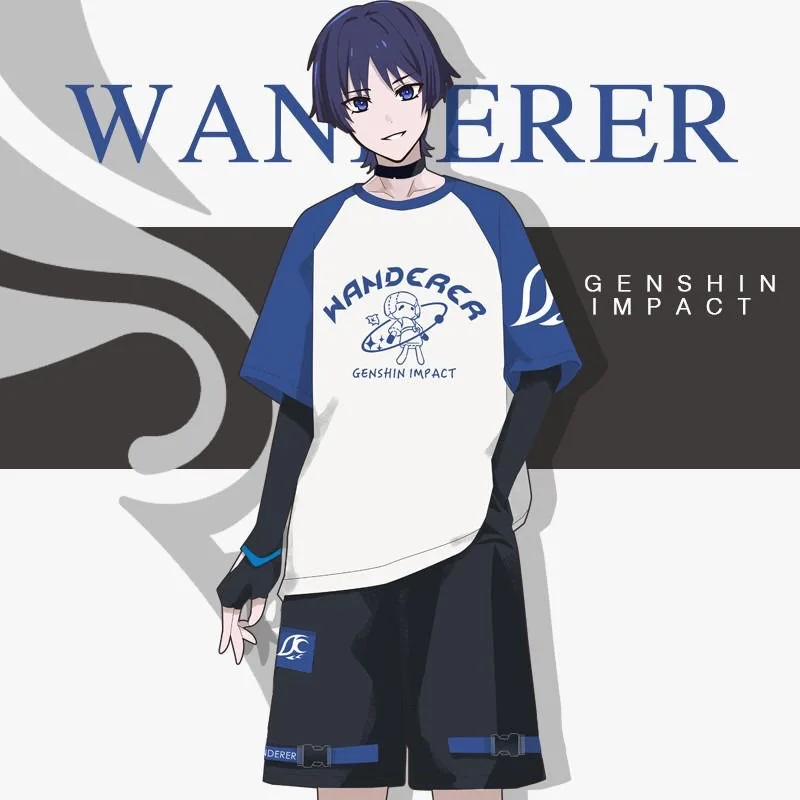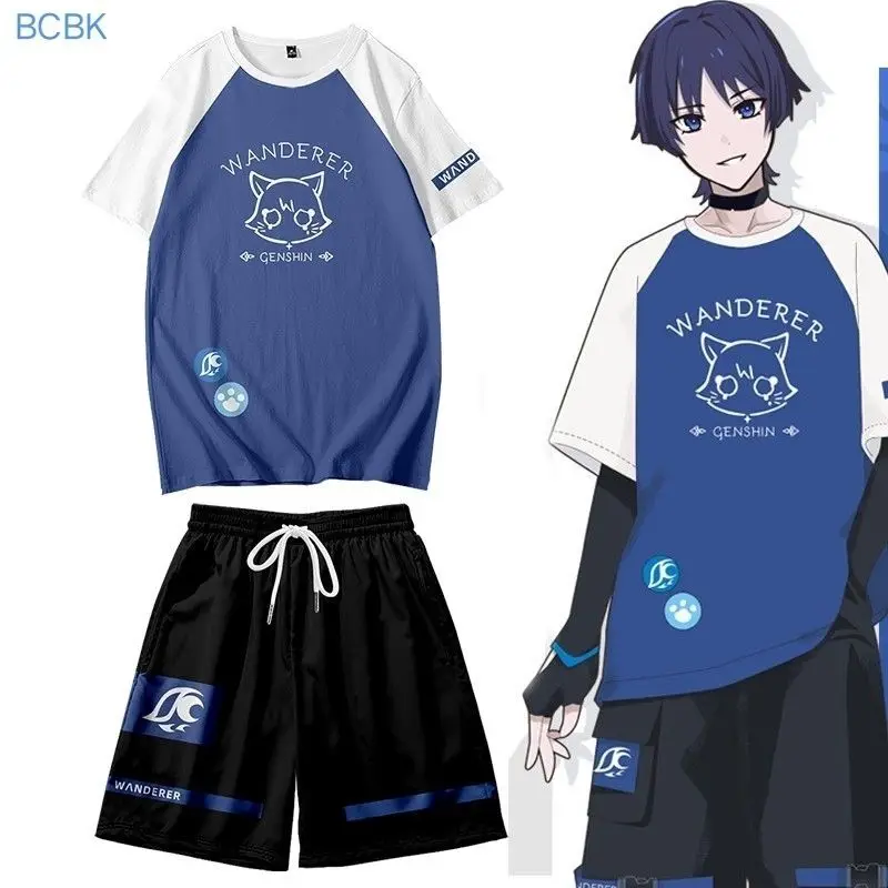 Wanderer Cosplay Genshin Impact Balladeer Tops Scaramouche T Shirt Shorts Pant Costume Kimono Shirt Haori Cool Streetwear
