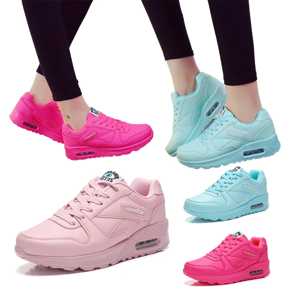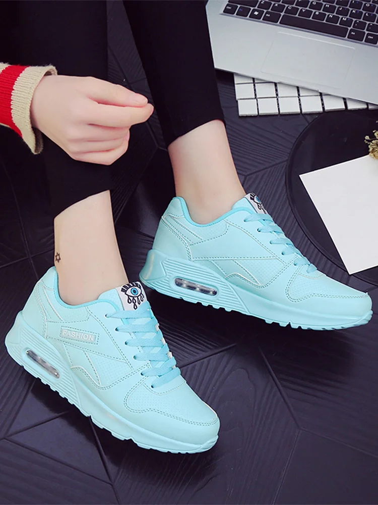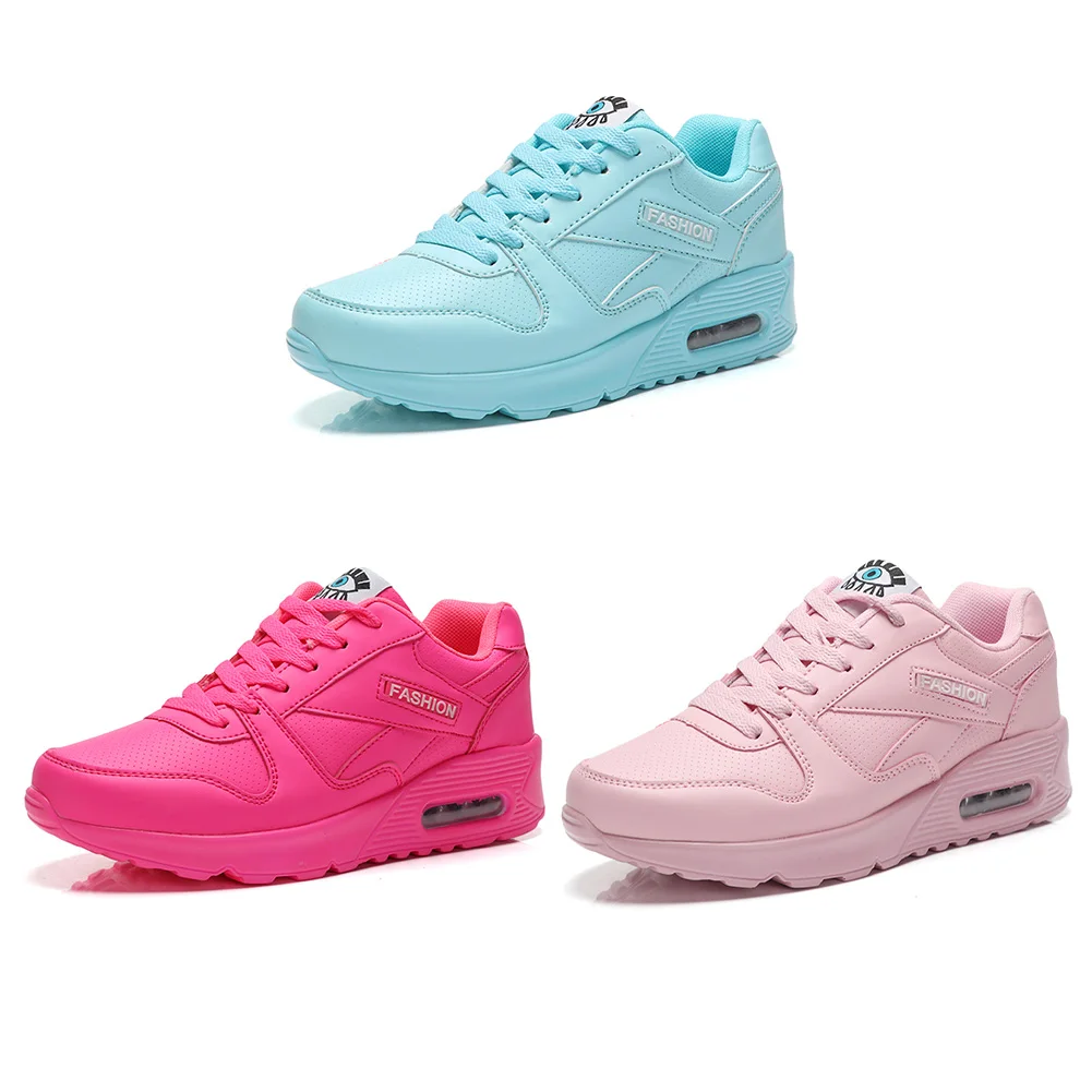 Women Air Cushion Sports Shoes PU Leather Outdoor Walking Shoes Casual Running Shoes Ladies Jogging Shoes