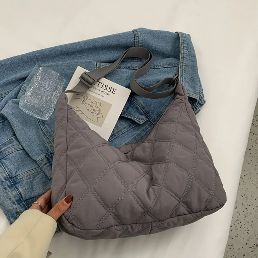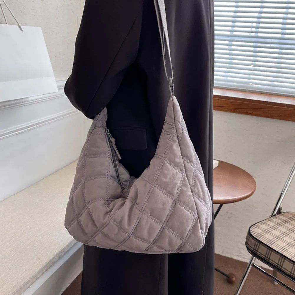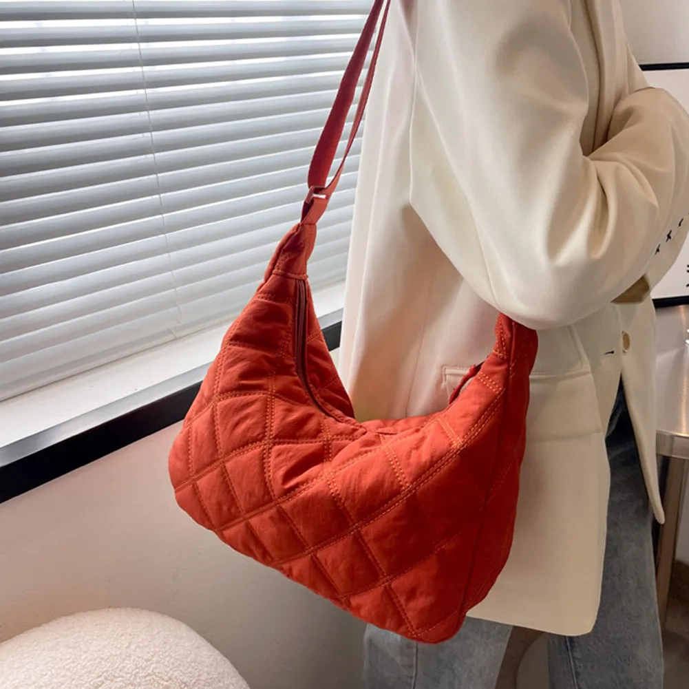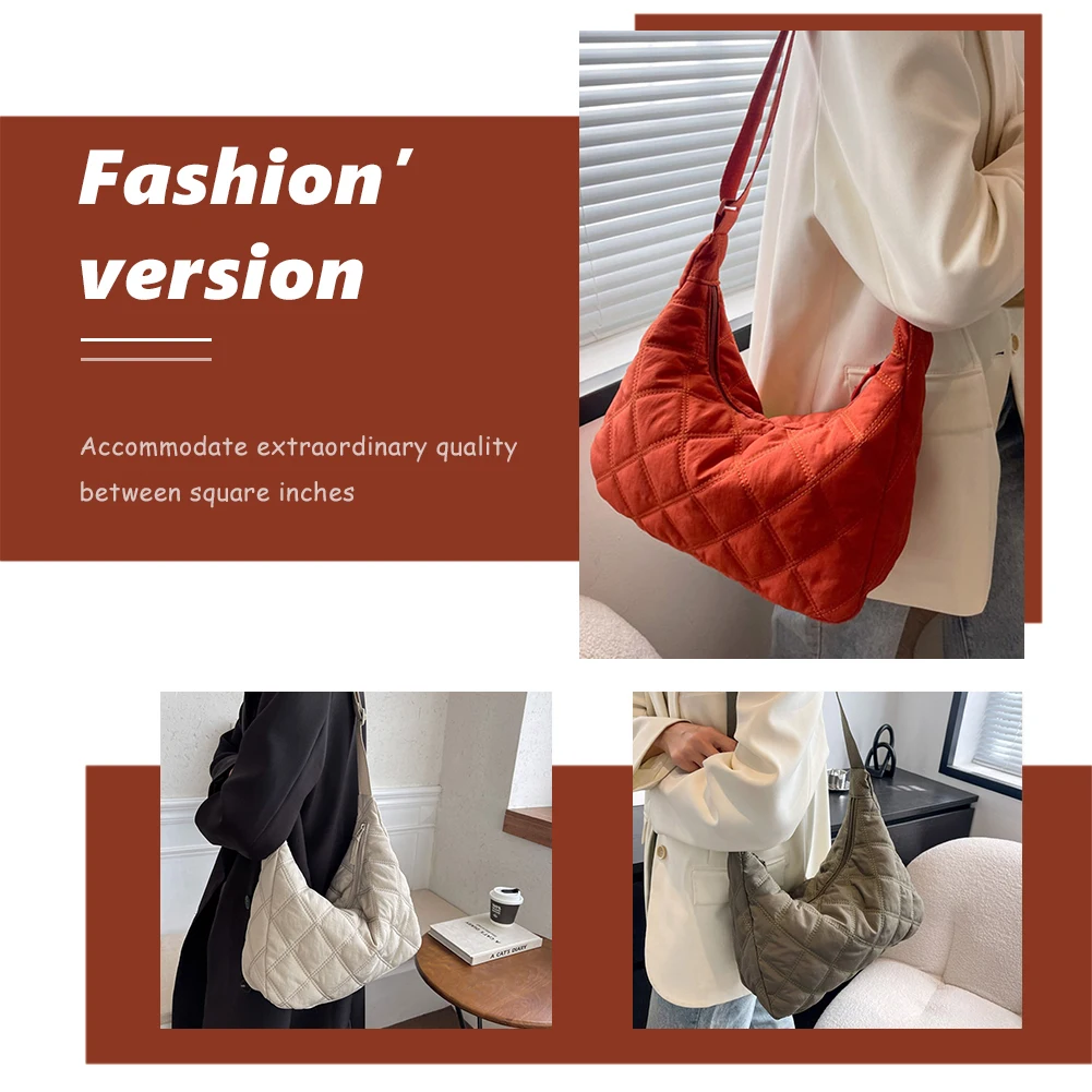 Women Fashion Crossbody Bag Solid Color Quilted Small Tote Bag Adjustable Strap Diamond Lattice Large Capacity for Autumn Winter