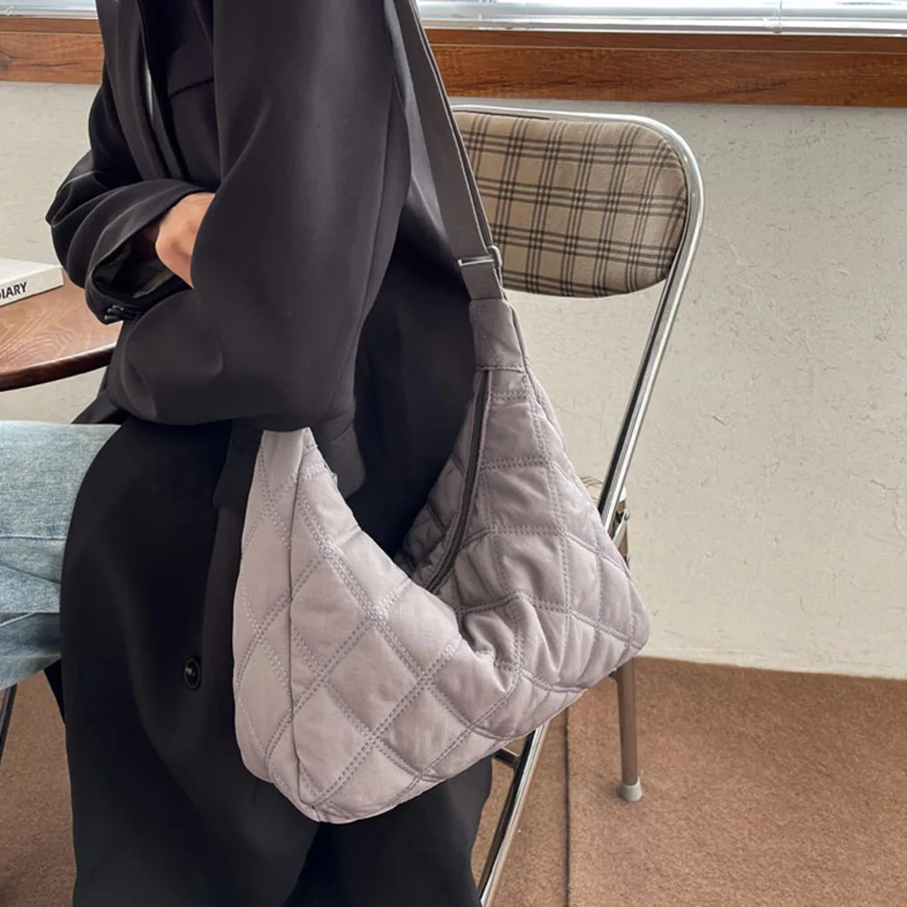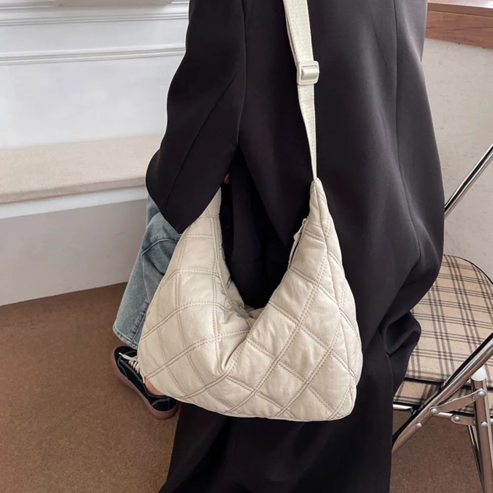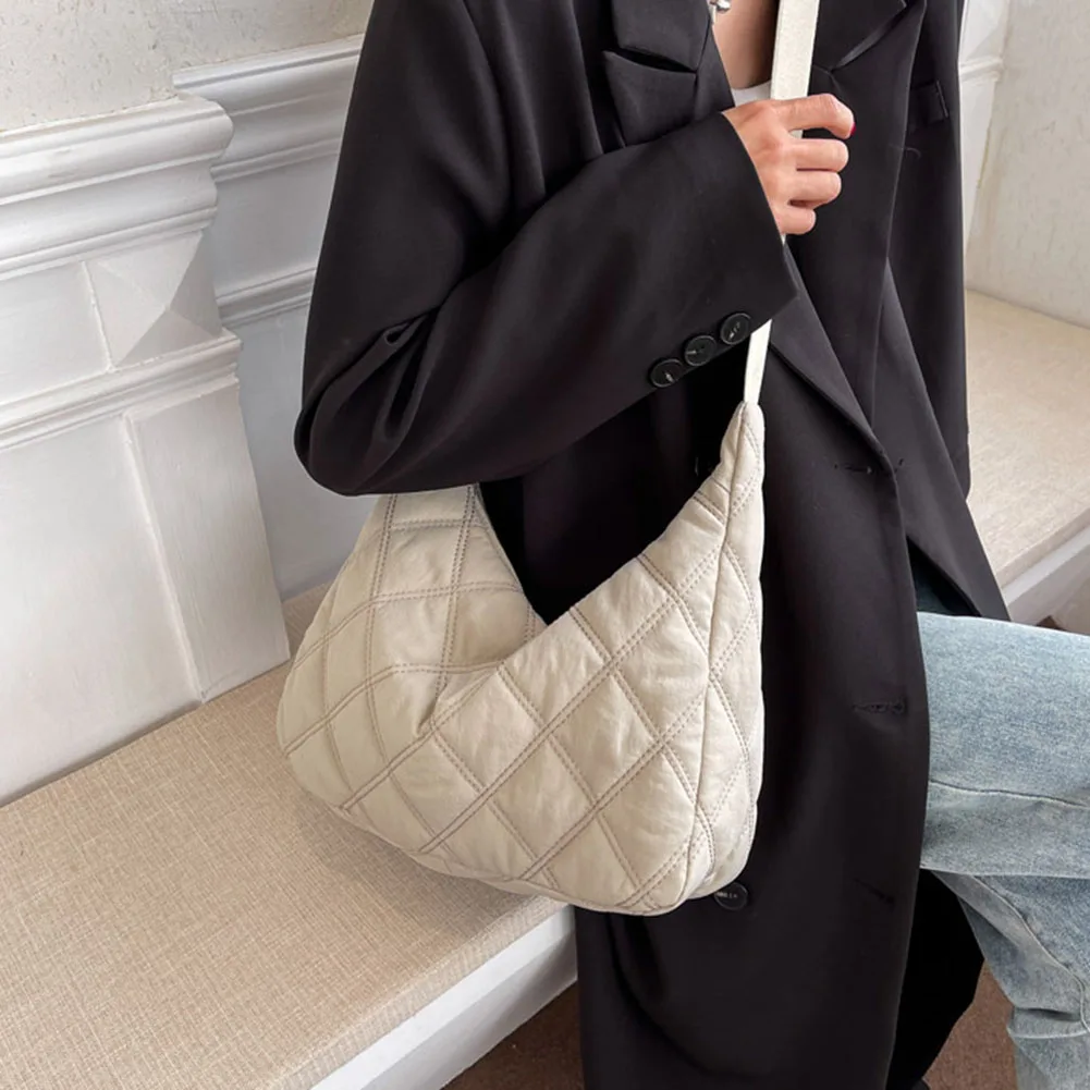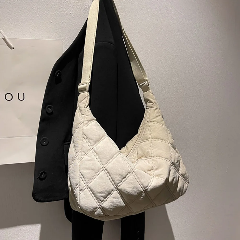 Women Fashion Crossbody Bag Solid Color Quilted Small Tote Bag Adjustable Strap Diamond Lattice Large Capacity for Autumn Winter