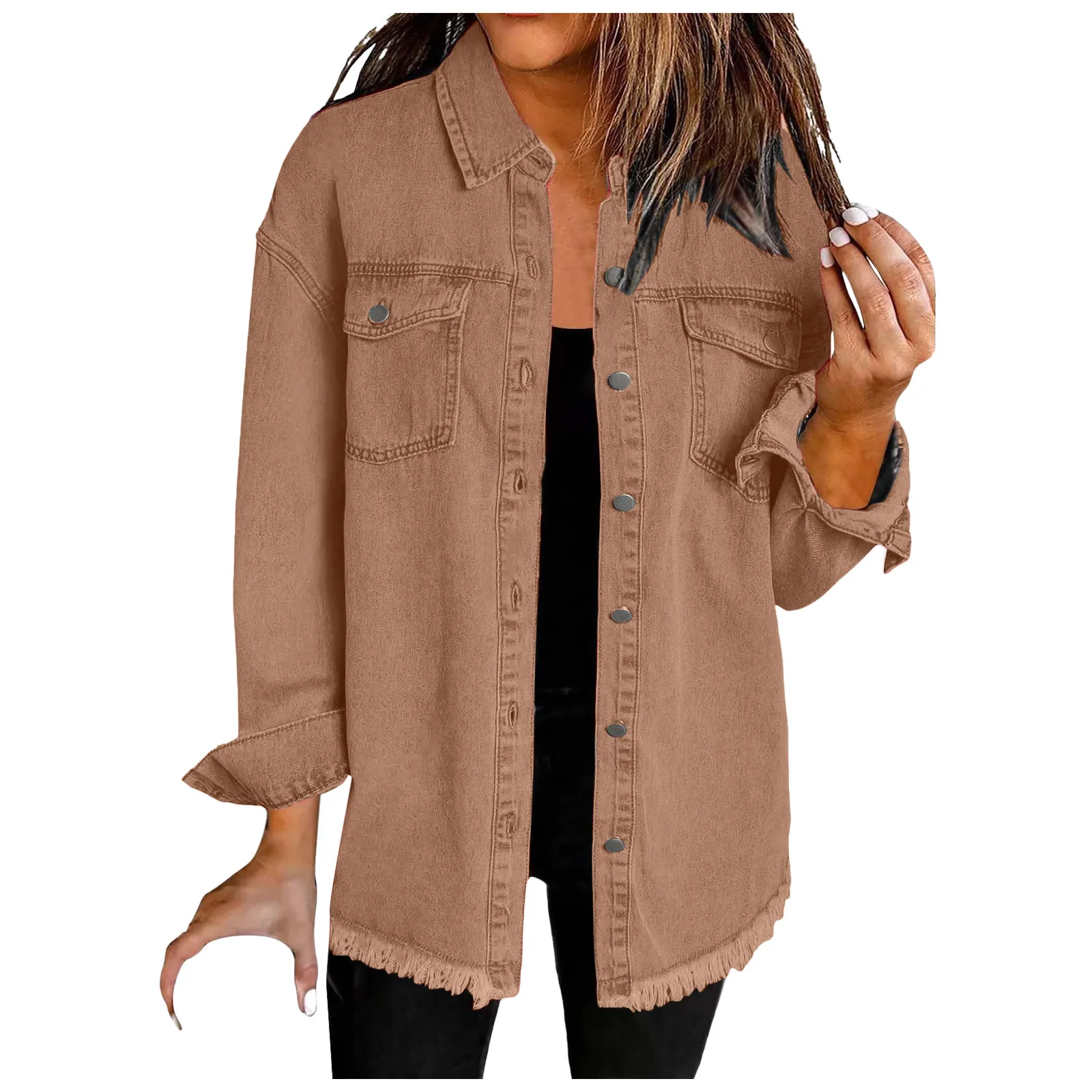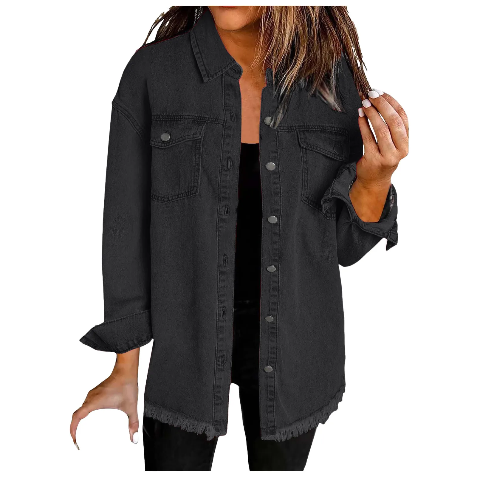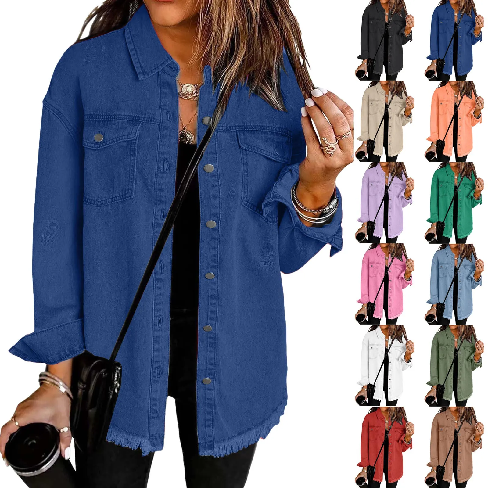 Women Fashion Washed Denim Shirt Jacket Autumn And Winter Personality Street Jacket Coat
