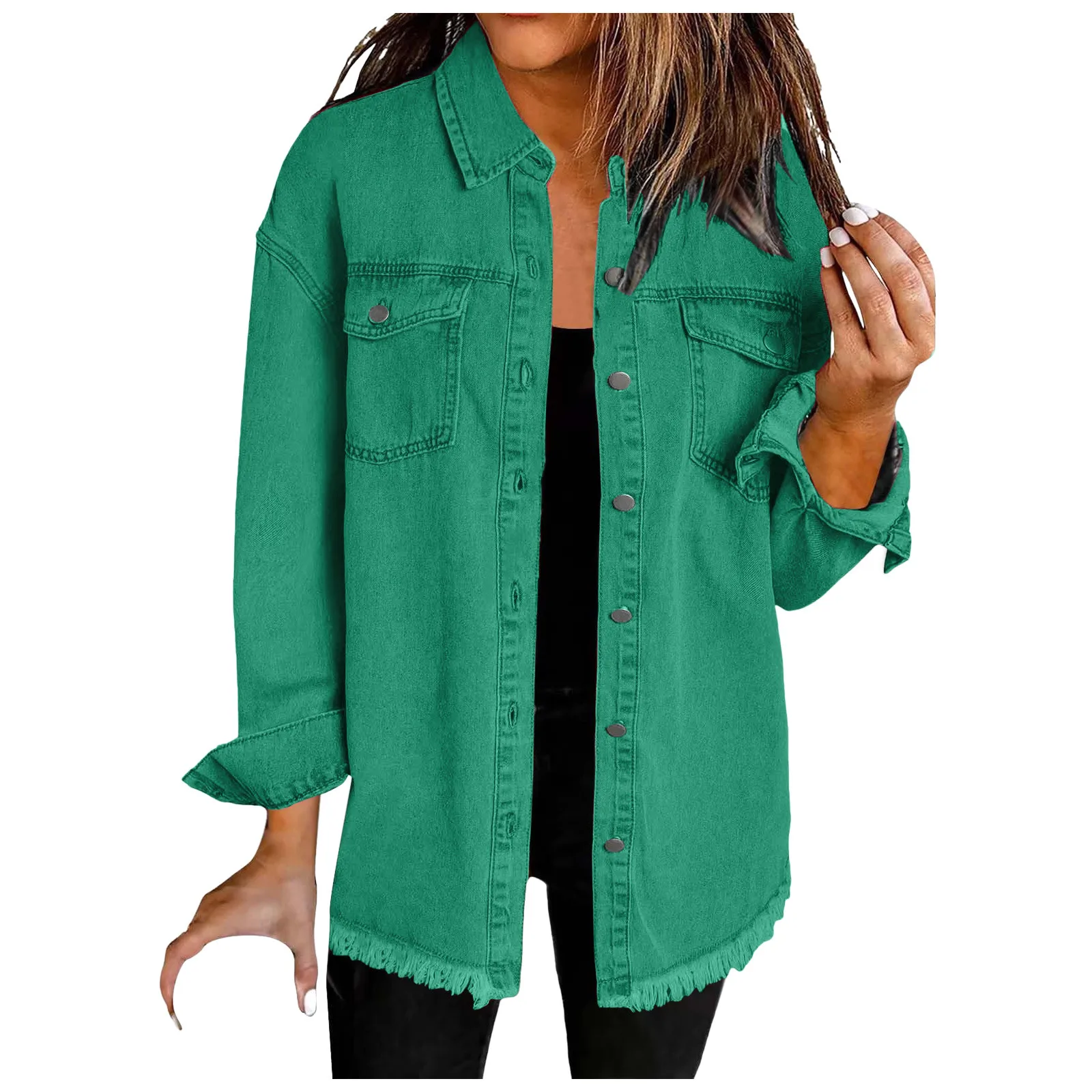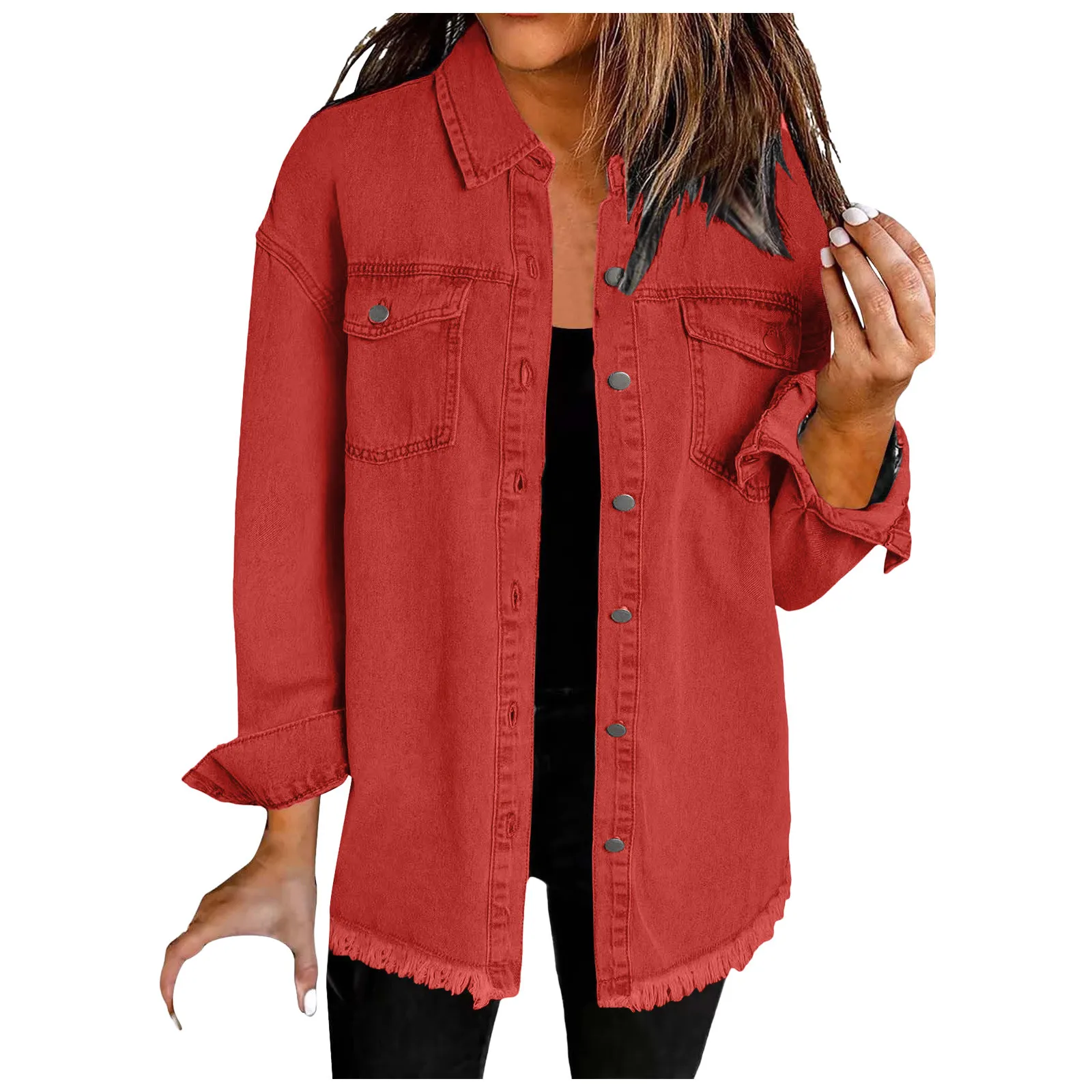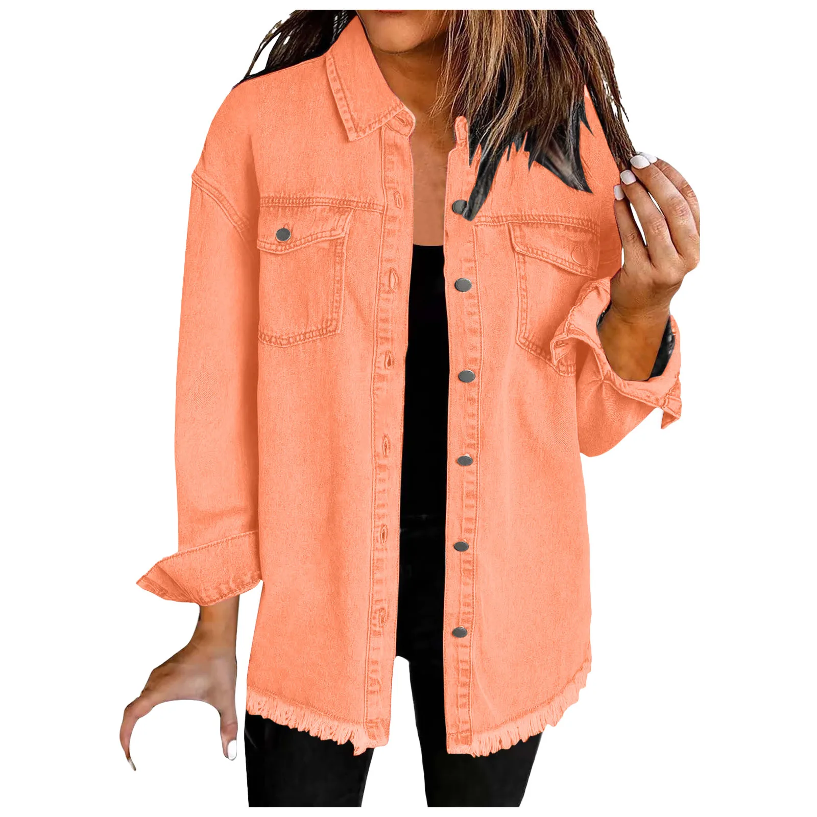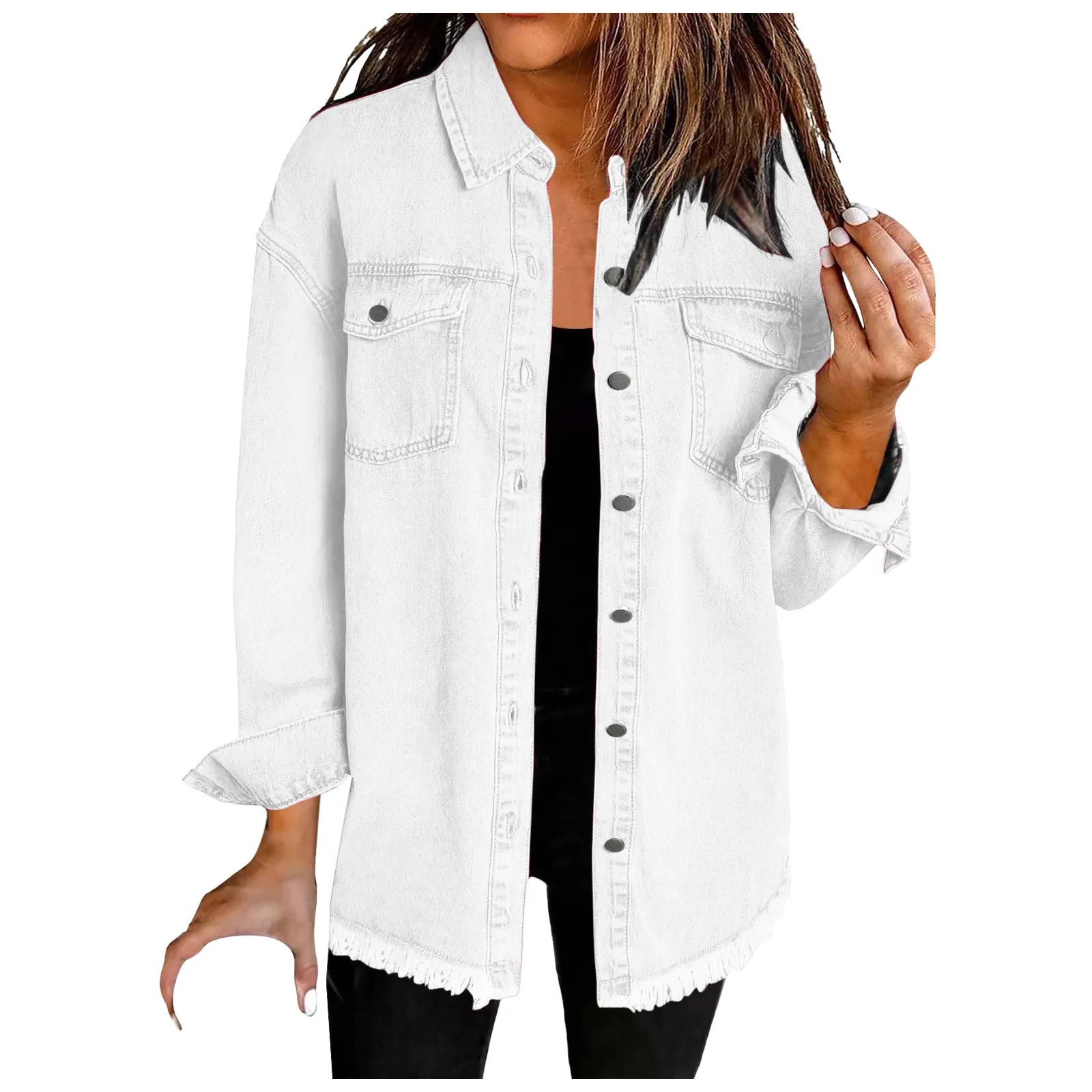 Women Fashion Washed Denim Shirt Jacket Autumn And Winter Personality Street Jacket Coat