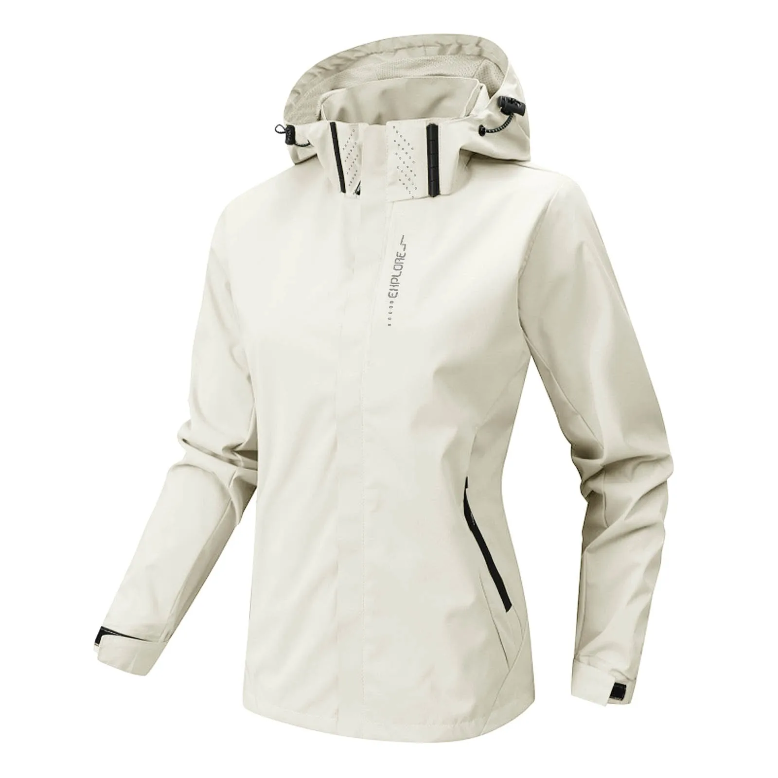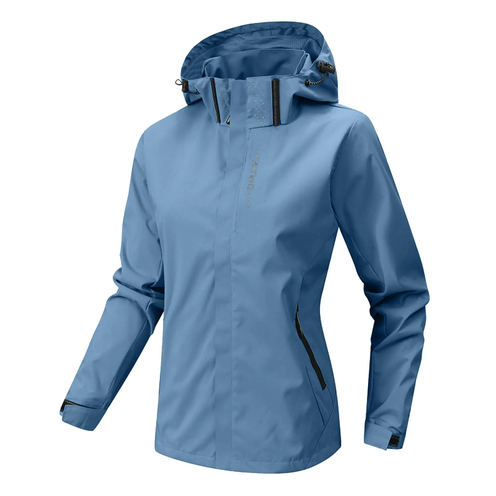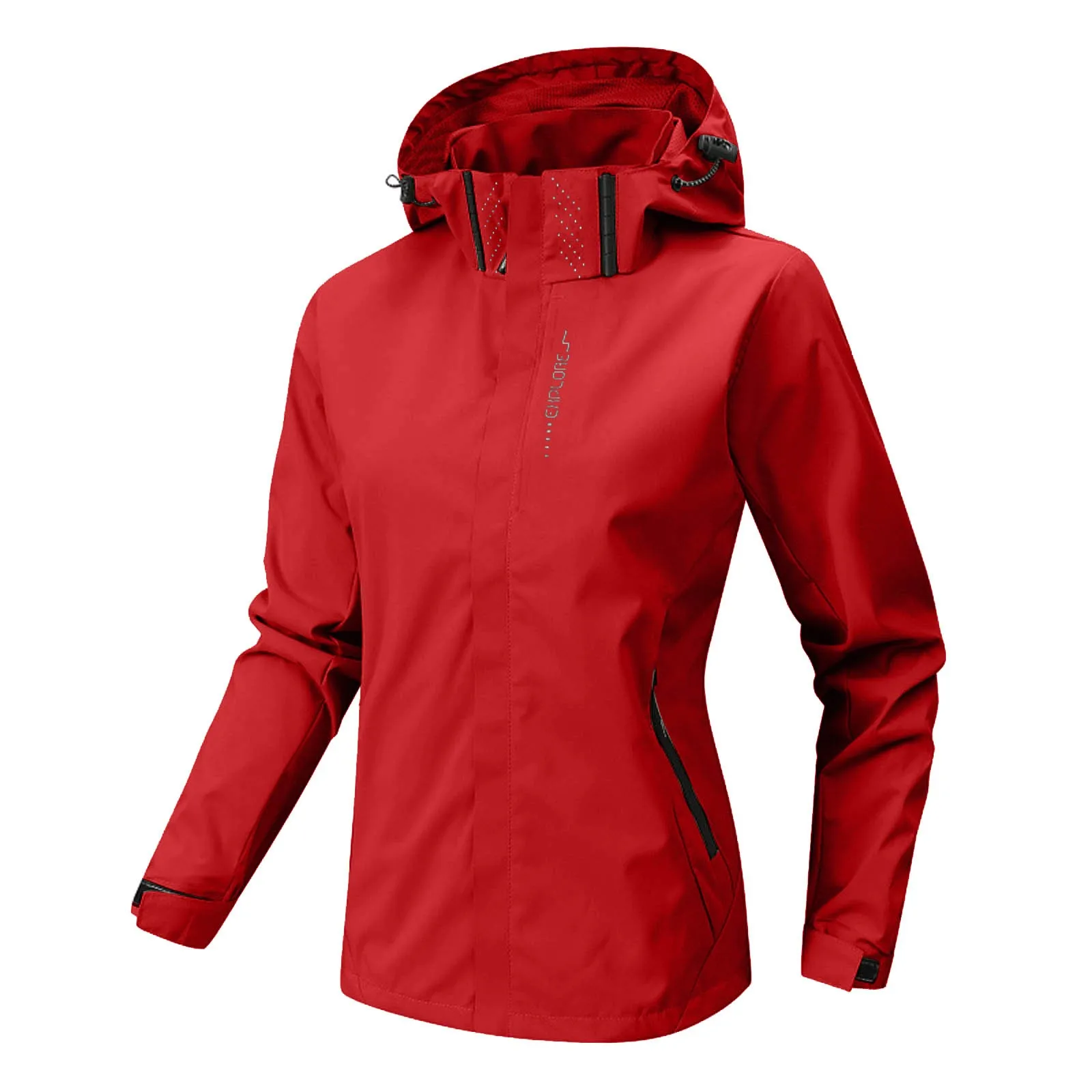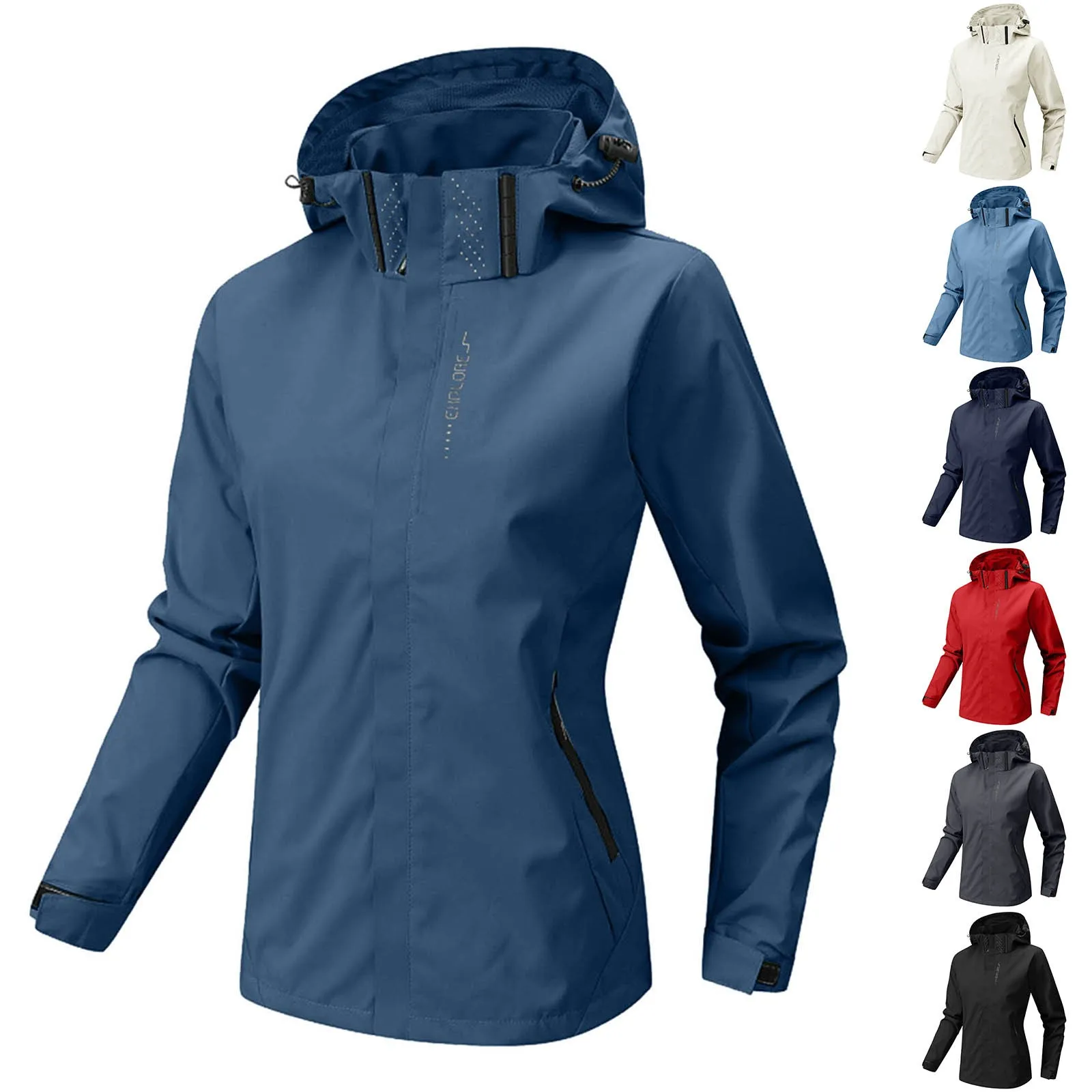 Women’s Autumn Winter Waterproof Outerwear Solid Color Hooded Slim Fit Pockets Jacket Zip Up Casual Windbreaker For Women