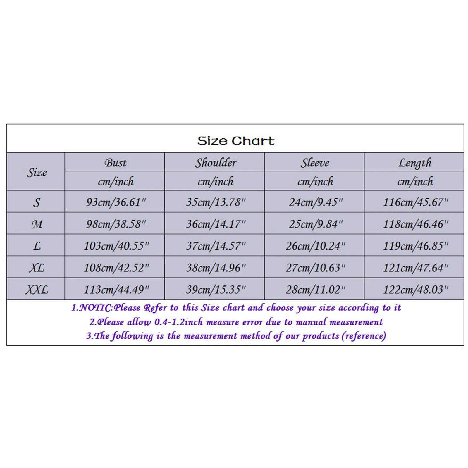 Size:XXL | Bust:113cm/44.49” | Shoulder:39cm/15.35” | Sleeve:28cm/11.02” | Length:122cm/48.03” |